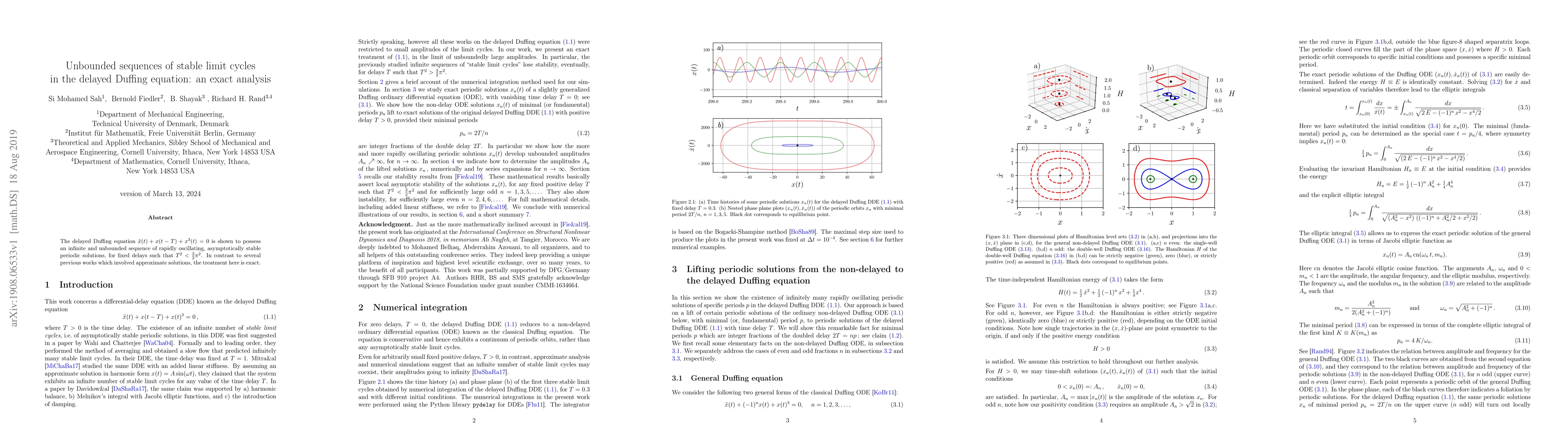 The delayed Duffing equation exhibits an infinite sequence of rapidly oscillating, asymptotically stable periodic solutions for specific delay values. This exact analysis reveals an unbounded set of stable limit cycles, contrasting with previous approximate studies.