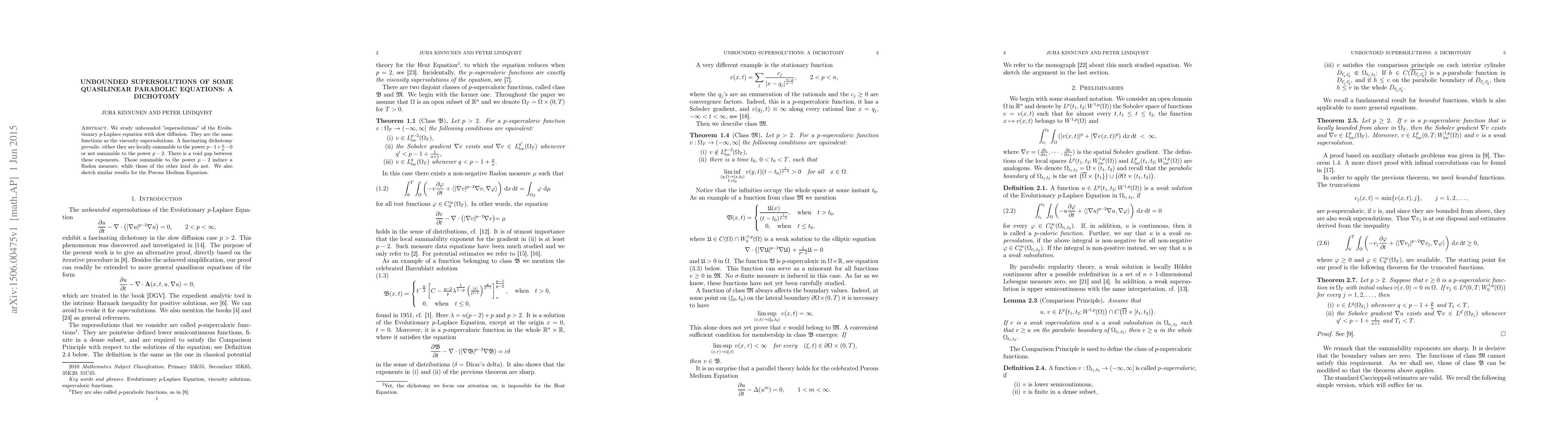 We study unbounded (viscosity) supersolutions of the Evolutionary p-Laplace Equation in the slow diffusion case. The supersolutions fall into two widely different classes, depending on whether they are locally summable to the power p-2 or not. Also the Porous Medium Equation is studied.