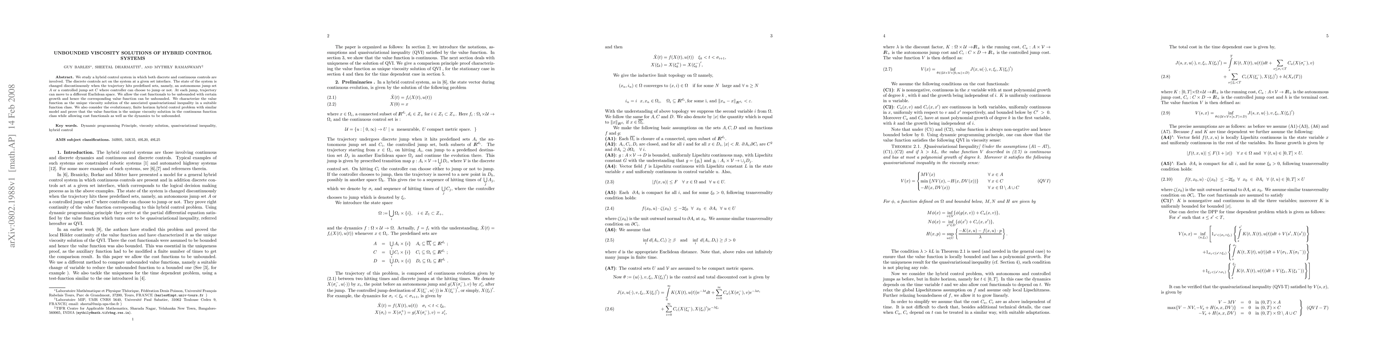 We study a hybrid control system in which both discrete and continuous controls are involved. The discrete controls act on the system at a given set interface. The state of the system is changed discontinuously when the trajectory hits predefined sets, namely, an autonomous jump set $A$ or a controlled jump set $C$ where controller can choose to jump or not. At each jump, trajectory can move to a different Euclidean space. We allow the cost functionals to be unbounded with certain growth and hence the corresponding value function can be unbounded. We characterize the value function as the unique viscosity solution of the associated quasivariational inequality in a suitable function class. We also consider the evolutionary, finite horizon hybrid control problem with similar model and prove that the value function is the unique viscosity solution in the continuous function class while allowing cost functionals as well as the dynamics to be unbounded.