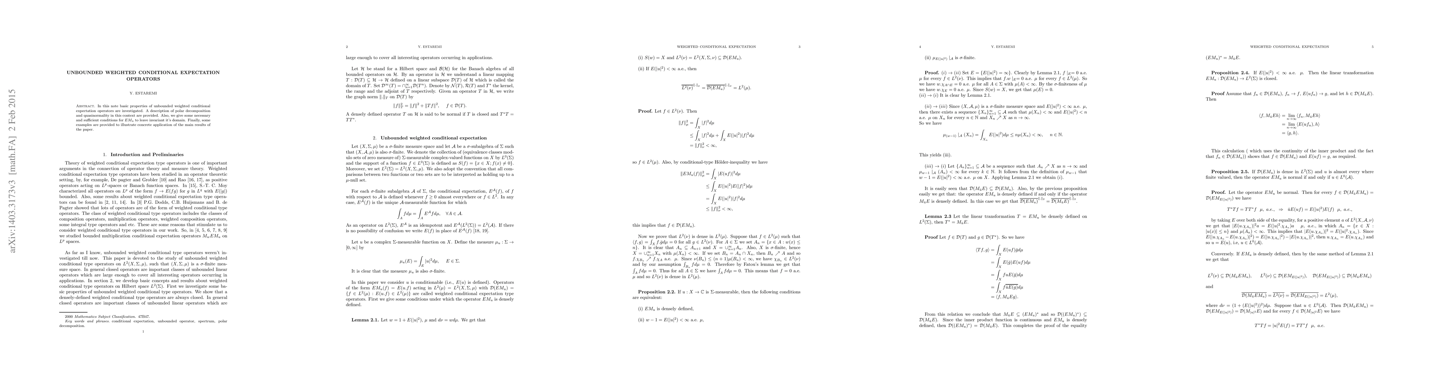 This paper investigates the fundamental properties of unbounded weighted conditional expectation operators, including their polar decomposition and quasinormality. It also explores the concept of hyperexpansive weighted conditional expectation operators.