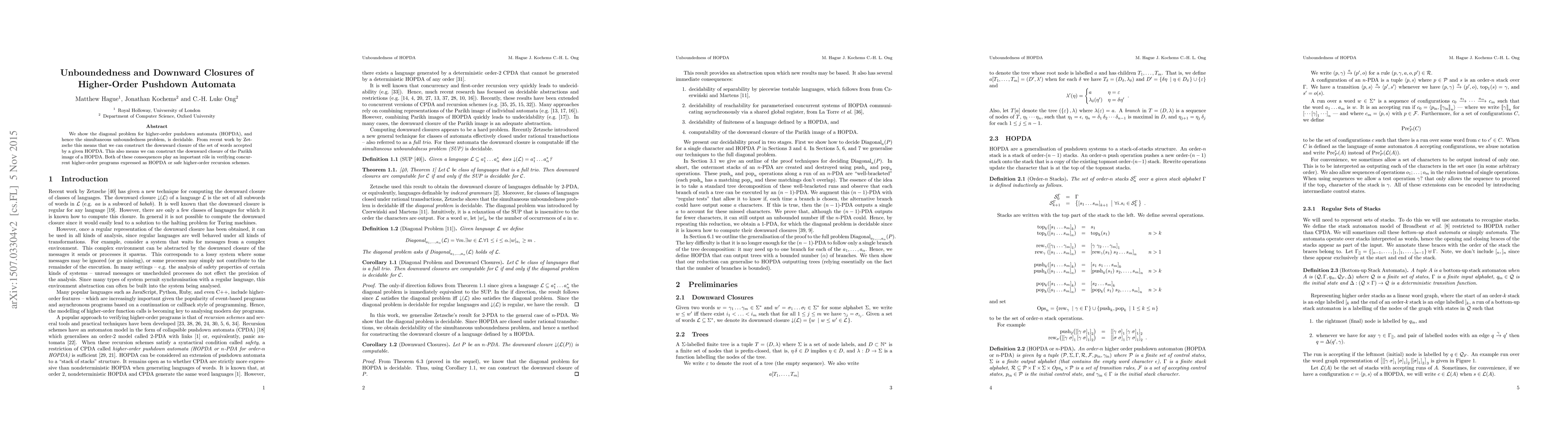 This paper proves the decidability of the diagonal problem for higher-order pushdown automata (HOPDA), which enables the construction of downward closures of accepted word sets and Parikh images, aiding in the verification of concurrent higher-order programs.