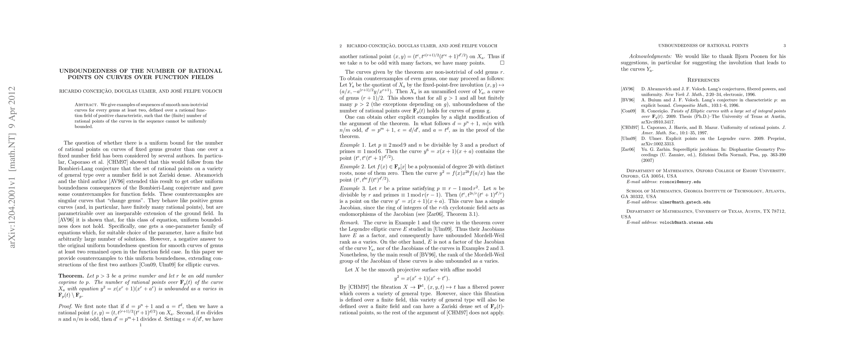 This paper presents examples of smooth, non-isotrivial curves of genus at least two over rational function fields in positive characteristic, demonstrating that the number of rational points on these curves cannot be uniformly bounded.