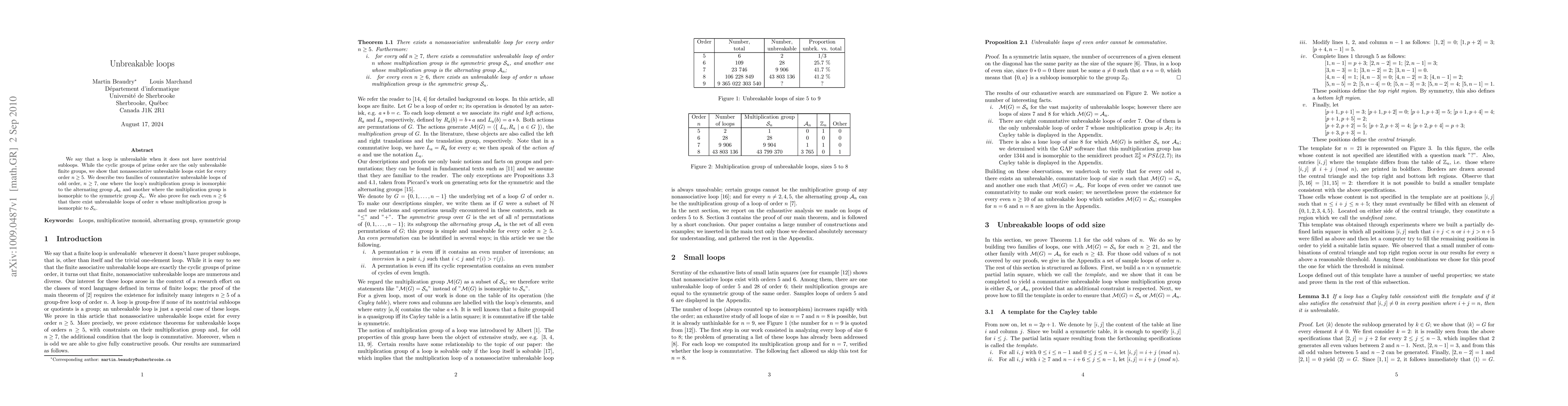 This paper explores the existence and structure of unbreakable loops, which lack nontrivial subloops. It reveals that while cyclic groups of prime order are the only unbreakable finite groups, nonassociative unbreakable loops exist for every order n >= 5, including two families of commutative unbreakable loops of odd order n >= 7 with distinct multiplication group isomorphisms.