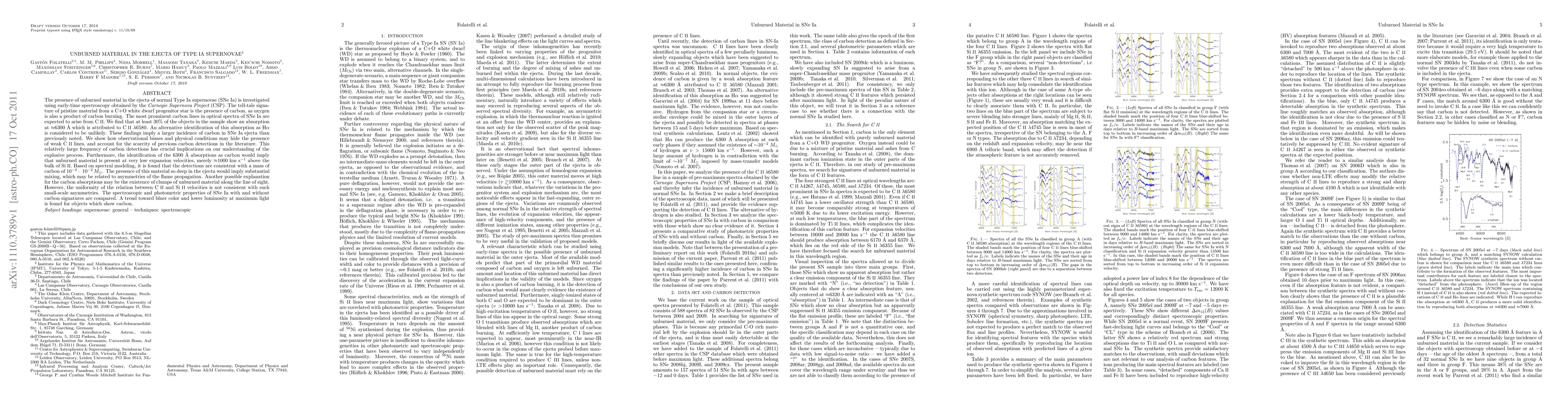 (Abridged) The presence of unburned material in the ejecta of normal Type Ia supernovae (SNeIa) is investigated using early-time spectroscopy obtained by the CSP. The tell-tale signature of pristine material from a C+O white dwarf progenitor star is the presence of carbon. The most prominent carbon lines in optical spectra of SNeIa are due to C II. We find that at least 30% of the objects in the sample show an absorption at ~6300 AA which is attributed to C II 6580. An association to H_alpha is considered to be unlikely. These findings imply a larger incidence of carbon in SNeIa ejecta than previously noted. We show how observational biases and physical conditions may hide these C II lines, and account for the scarcity of previous carbon detections. This relatively large frequency of carbon detections has crucial implications on our understanding of the explosive process. The observations indicate that carbon is present merely ~1000 km s^-1 above the bulk of Si II. Spectral modeling shows the detections are consistent with a mass of carbon of 10^-3--10^-2 M_sun. This would imply substantial mixing, which may be related to asymmetries of the flame propagation or clumps of unburned material along the line of sight. However, the uniformity of the relation between C II and Si II velocities is not consistent with the latter scenario. The observational properties of SNeIa with and without carbon signatures are compared. A trend toward bluer color and lower luminosity is found for objects with carbon.