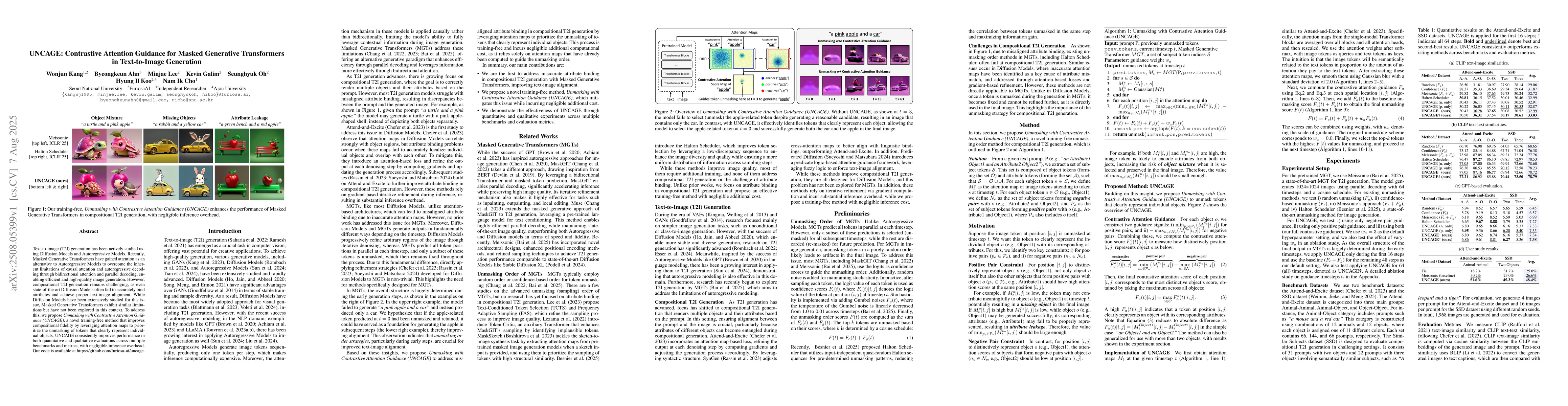 Text-to-image (T2I) generation has been actively studied using Diffusion Models and Autoregressive Models. Recently, Masked Generative Transformers have gained attention as an alternative to Autoregressive Models to overcome the inherent limitations of causal attention and autoregressive decoding through bidirectional attention and parallel decoding, enabling efficient and high-quality image generation. However, compositional T2I generation remains challenging, as even state-of-the-art Diffusion Models often fail to accurately bind attributes and achieve proper text-image alignment. While Diffusion Models have been extensively studied for this issue, Masked Generative Transformers exhibit similar limitations but have not been explored in this context. To address this, we propose Unmasking with Contrastive Attention Guidance (UNCAGE), a novel training-free method that improves compositional fidelity by leveraging attention maps to prioritize the unmasking of tokens that clearly represent individual objects. UNCAGE consistently improves performance in both quantitative and qualitative evaluations across multiple benchmarks and metrics, with negligible inference overhead. Our code is available at https://github.com/furiosa-ai/uncage.