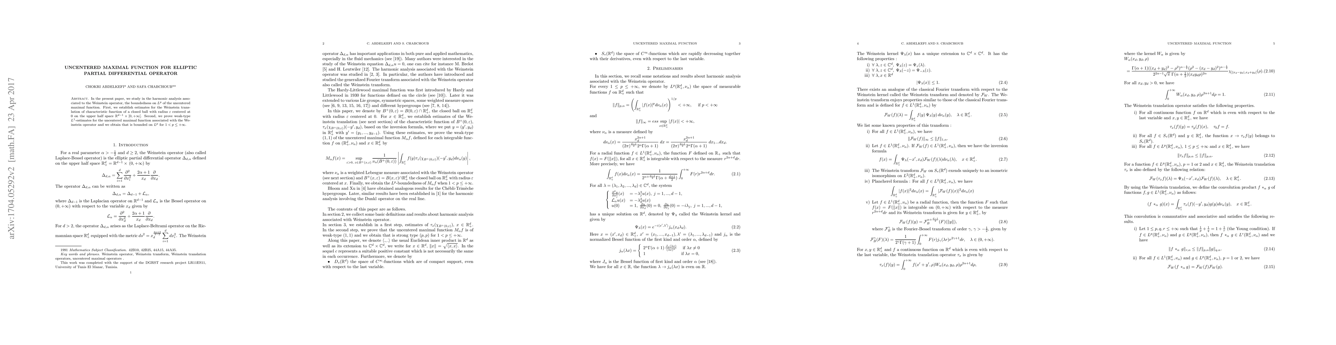 The present paper, we study in the harmonic analysis associated to the Weinstein operator, the boundedness on Lp of the uncentered maximal function. First, we establish estimates for the Weinstein translation of characteristic function of a closed ball with radius " centered at 0 on the upper half space. Second, we prove weak-type L1-estimates for the uncentered maximal function associated with the Weinstein operator and we obtain that is bounded on Lp for p>1.