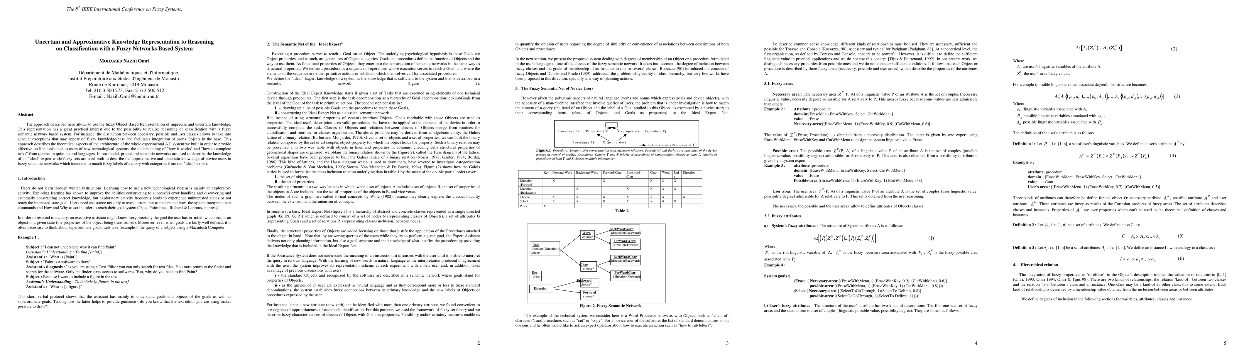 The approach described here allows to use the fuzzy Object Based Representation of imprecise and uncertain knowledge. This representation has a great practical interest due to the possibility to realize reasoning on classification with a fuzzy semantic network based system. For instance, the distinction between necessary, possible and user classes allows to take into account exceptions that may appear on fuzzy knowledge-base and facilitates integration of user's Objects in the base. This approach describes the theoretical aspects of the architecture of the whole experimental A.I. system we built in order to provide effective on-line assistance to users of new technological systems: the understanding of "how it works" and "how to complete tasks" from queries in quite natural languages. In our model, procedural semantic networks are used to describe the knowledge of an "ideal" expert while fuzzy sets are used both to describe the approximative and uncertain knowledge of novice users in fuzzy semantic networks which intervene to match fuzzy labels of a query with categories from our "ideal" expert.