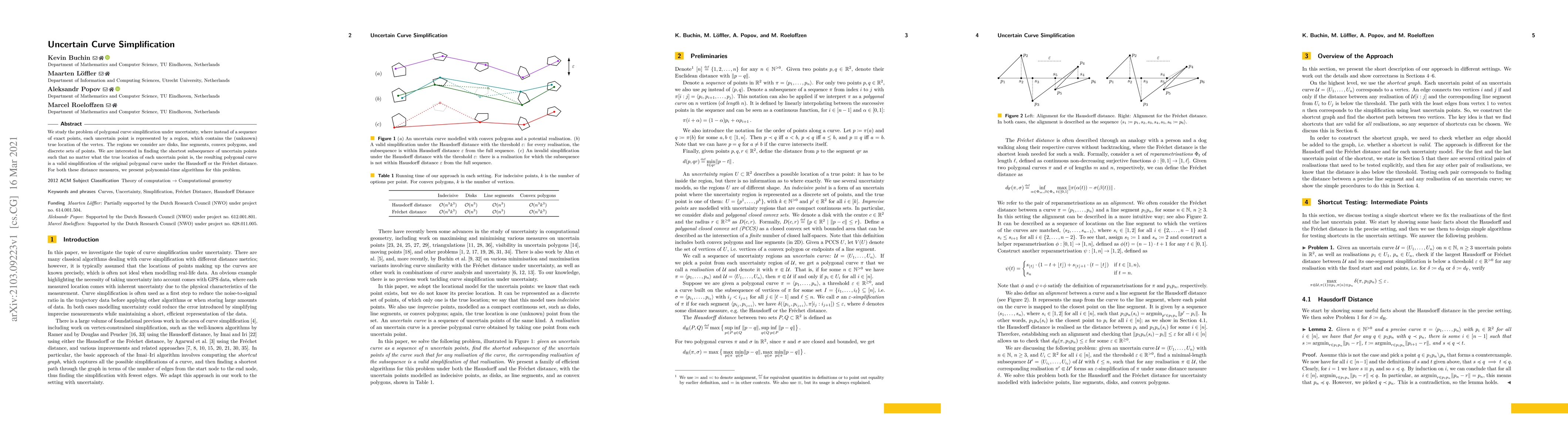 This paper addresses the challenge of simplifying polygonal curves when the exact locations of vertices are uncertain, represented by various regions. It proposes algorithms to find the shortest subsequence that ensures the simplified curve remains valid under Hausdorff or Fréchet distance measures.