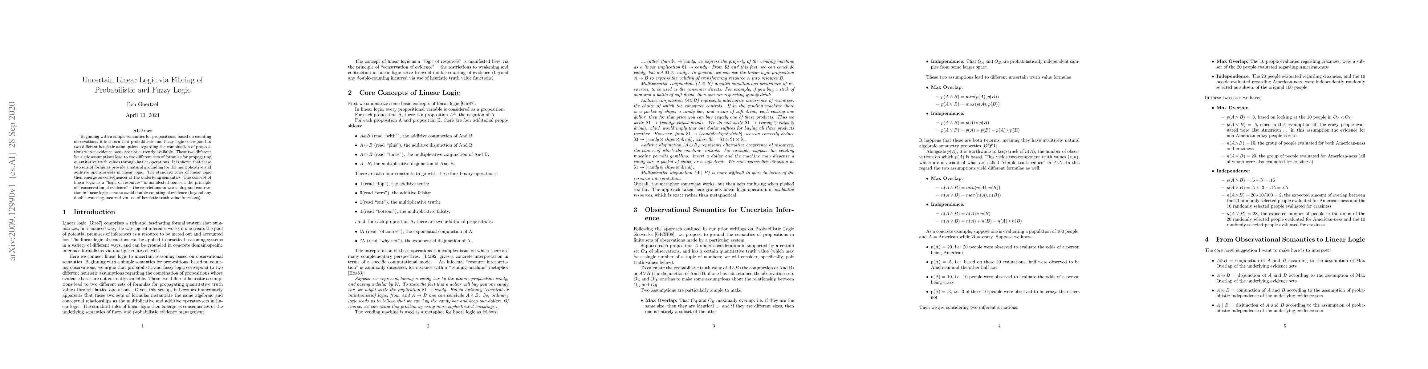Beginning with a simple semantics for propositions, based on counting observations, it is shown that probabilistic and fuzzy logic correspond to two different heuristic assumptions regarding the combination of propositions whose evidence bases are not currently available. These two different heuristic assumptions lead to two different sets of formulas for propagating quantitative truth values through lattice operations. It is shown that these two sets of formulas provide a natural grounding for the multiplicative and additive operator-sets in linear logic. The standard rules of linear logic then emerge as consequences of the underlying semantics. The concept of linear logic as a ``logic of resources" is manifested here via the principle of ``conservation of evidence" -- the restrictions to weakening and contraction in linear logic serve to avoid double-counting of evidence (beyond any double-counting incurred via use of heuristic truth value functions).