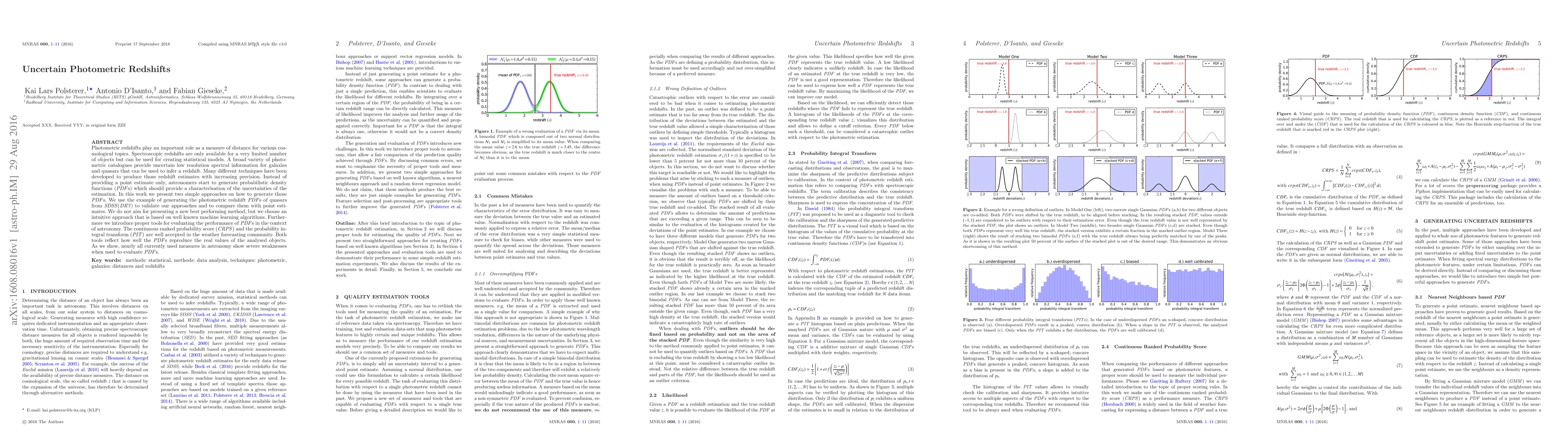 Photometric redshifts play an important role as a measure of distance for various cosmological topics. Spectroscopic redshifts are only available for a very limited number of objects but can be used for creating statistical models. A broad variety of photometric catalogues provide uncertain low resolution spectral information for galaxies and quasars that can be used to infer a redshift. Many different techniques have been developed to produce those redshift estimates with increasing precision. Instead of providing a point estimate only, astronomers start to generate probabilistic density functions (PDFs) which should provide a characterisation of the uncertainties of the estimation. In this work we present two simple approaches on how to generate those PDFs. We use the example of generating the photometric redshift PDFs of quasars from SDSS(DR7) to validate our approaches and to compare them with point estimates. We do not aim for presenting a new best performing method, but we choose an intuitive approach that is based on well known machine learning algorithms. Furthermore we introduce proper tools for evaluating the performance of PDFs in the context of astronomy. The continuous ranked probability score (CRPS) and the probability integral transform (PIT) are well accepted in the weather forecasting community. Both tools reflect how well the PDFs reproduce the real values of the analysed objects. As we show, nearly all currently used measures in astronomy show severe weaknesses when used to evaluate PDFs.