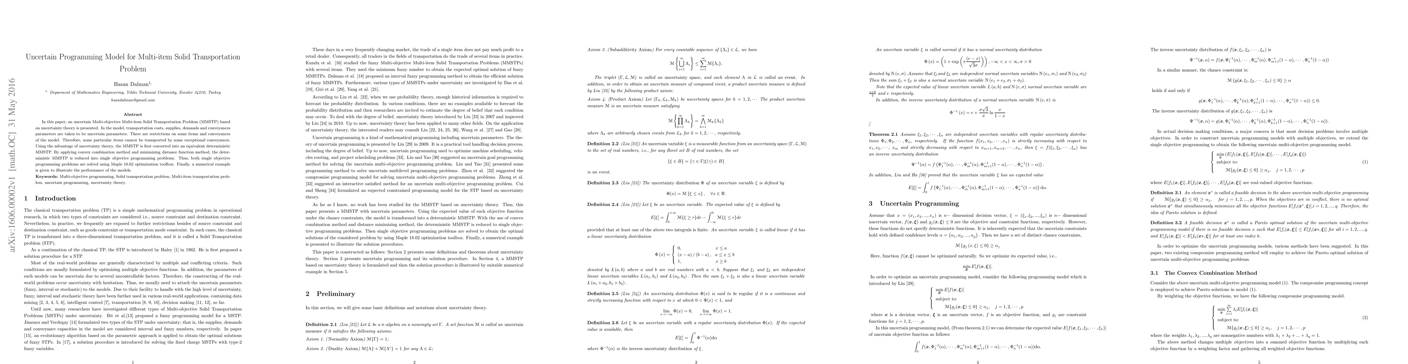 This paper proposes an uncertain multi-objective multi-item solid transportation problem model based on uncertainty theory, converting it into a deterministic equivalent. It solves the deterministic model using optimization techniques and demonstrates its effectiveness through a numerical example.