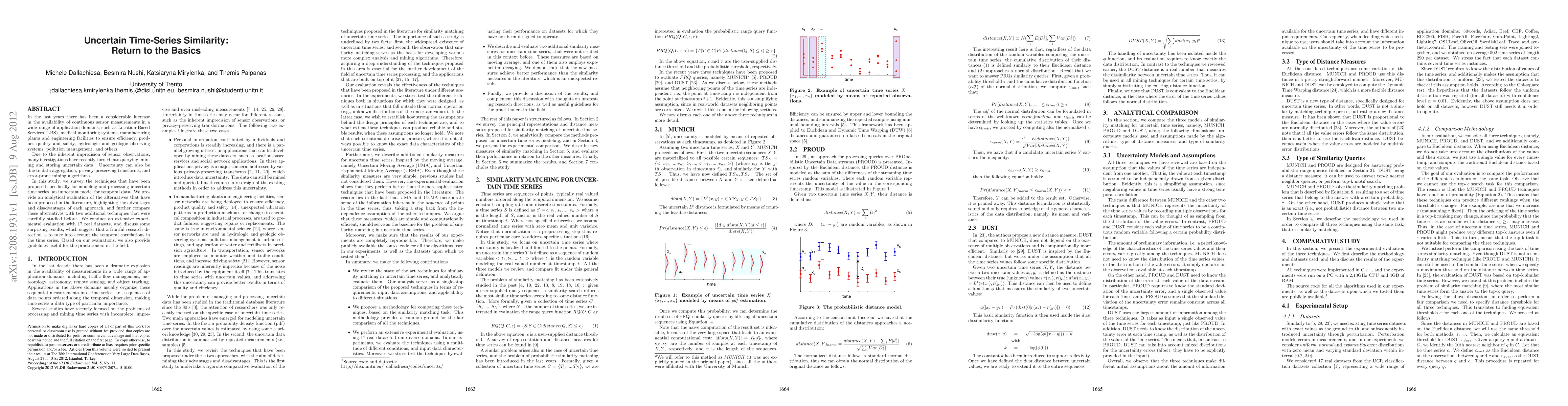 In the last years there has been a considerable increase in the availability of continuous sensor measurements in a wide range of application domains, such as Location-Based Services (LBS), medical monitoring systems, manufacturing plants and engineering facilities to ensure efficiency, product quality and safety, hydrologic and geologic observing systems, pollution management, and others. Due to the inherent imprecision of sensor observations, many investigations have recently turned into querying, mining and storing uncertain data. Uncertainty can also be due to data aggregation, privacy-preserving transforms, and error-prone mining algorithms. In this study, we survey the techniques that have been proposed specifically for modeling and processing uncertain time series, an important model for temporal data. We provide an analytical evaluation of the alternatives that have been proposed in the literature, highlighting the advantages and disadvantages of each approach, and further compare these alternatives with two additional techniques that were carefully studied before. We conduct an extensive experimental evaluation with 17 real datasets, and discuss some surprising results, which suggest that a fruitful research direction is to take into account the temporal correlations in the time series. Based on our evaluations, we also provide guidelines useful for the practitioners in the field.