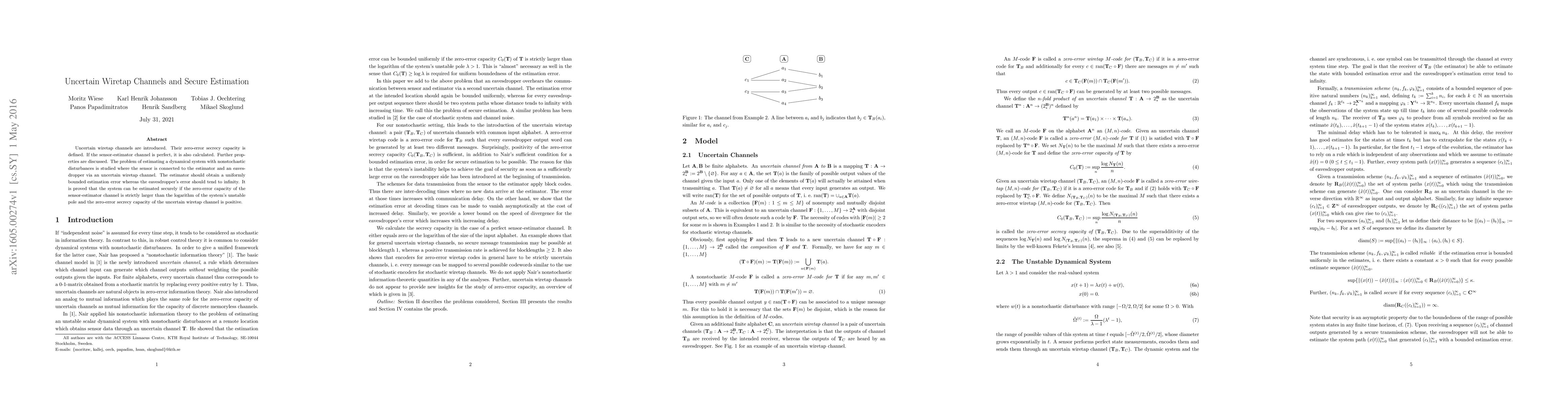 Researchers developed a method to estimate systems with uncertain wiretap channels while keeping eavesdropper errors high, based on the channel's zero-error capacity.