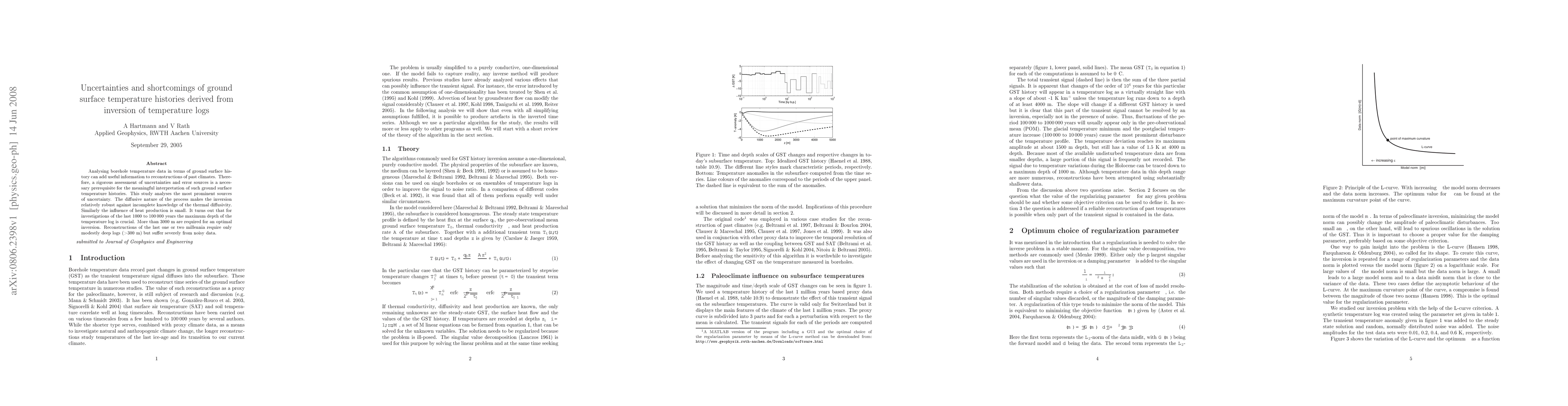 This study assesses uncertainties in ground surface temperature histories derived from borehole temperature logs, emphasizing the importance of log depth and data quality. It finds that while thermal diffusivity and heat production have minor effects, deeper logs (>3000 m) are essential for optimal inversion over longer periods (1000-100,000 years), whereas shallower logs (>300 m) suffice but are prone to noise for recent millennia.