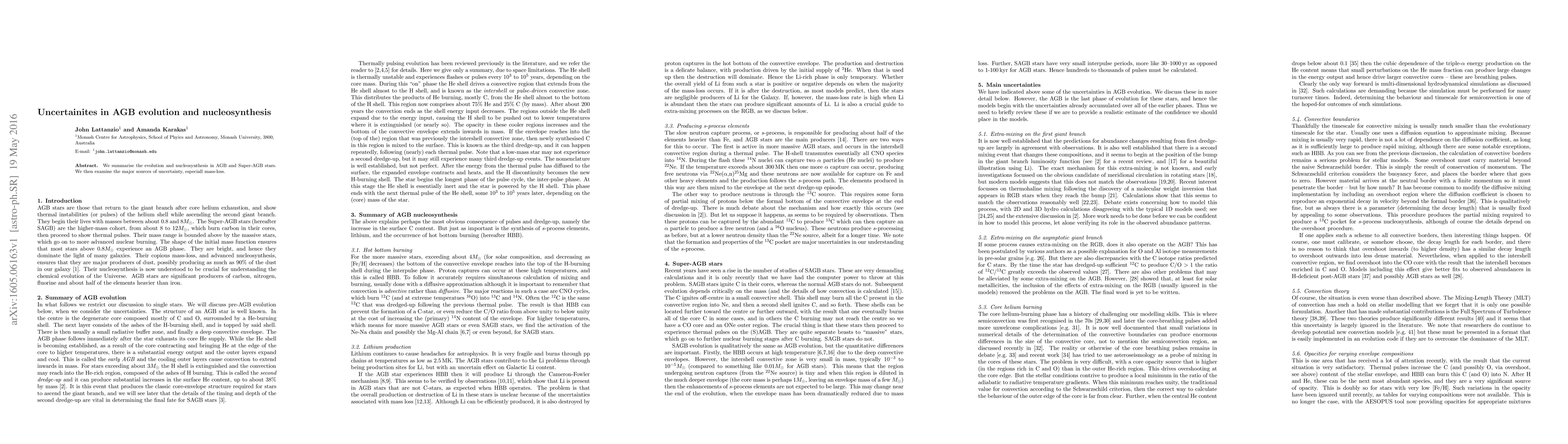 We summarise the evolution and nucleosynthesis in AGB and Super-AGB stars. We then examine the major sources of uncertainty, especially mass-loss.