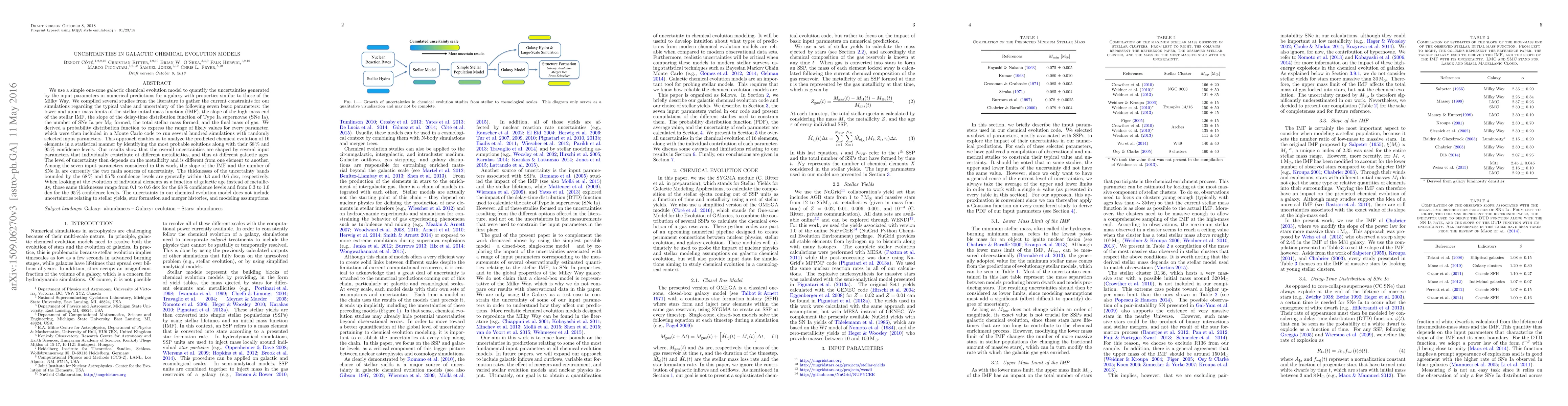 This paper quantifies uncertainties in galactic chemical evolution models using a one-zone model for a Milky Way-like galaxy, analyzing the impact of seven key parameters through Monte Carlo simulations. The study finds that the slope of the initial mass function and the number of Type Ia supernovae are the main sources of uncertainty, which vary with metallicity and affect different elements differently.