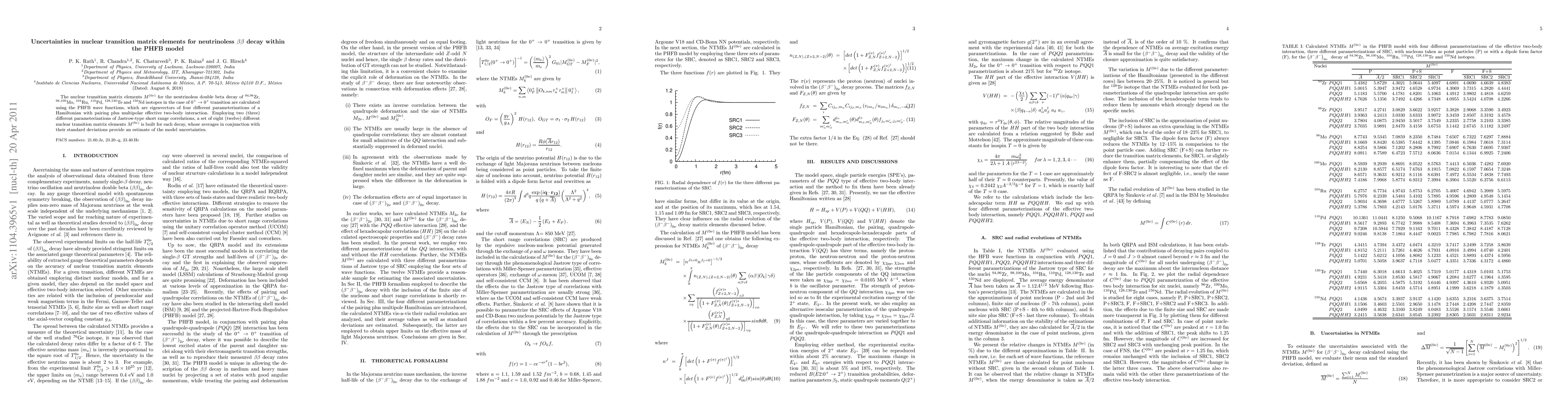 This paper calculates nuclear transition matrix elements for neutrinoless double beta decay in various isotopes using the PHFB model, and assesses uncertainties by employing different parameterizations of the Hamiltonian and Jastrow-type correlations, yielding a range of matrix elements and their associated standard deviations.