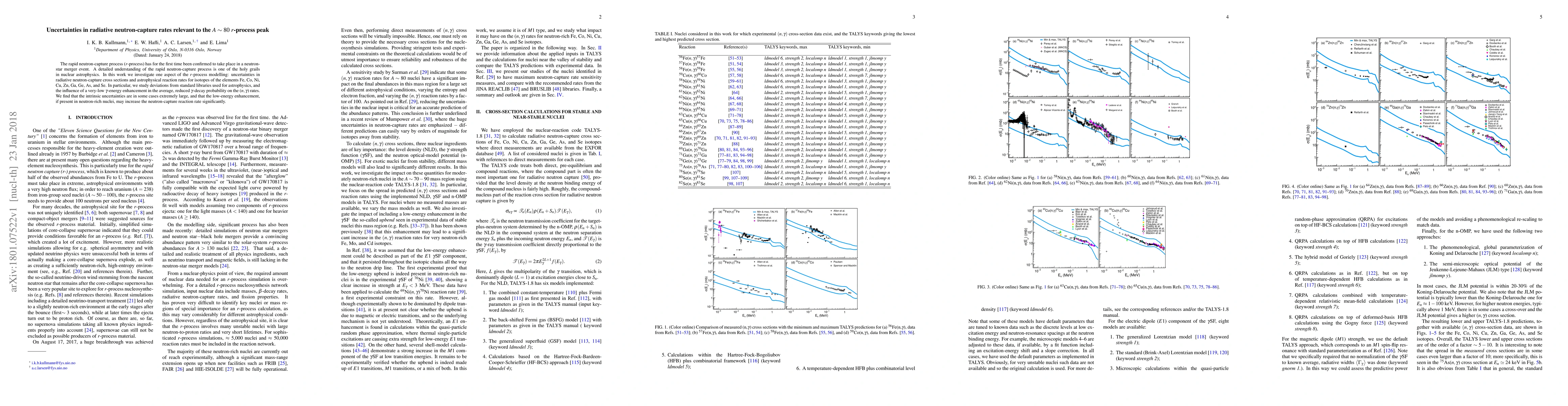 This paper investigates uncertainties in radiative neutron-capture cross sections for elements near the $A\sim 80$ $r$-process peak, finding significant intrinsic uncertainties. It also explores the impact of a low-energy $\gamma$-energy enhancement, suggesting it could notably increase neutron-capture rates in neutron-rich nuclei.