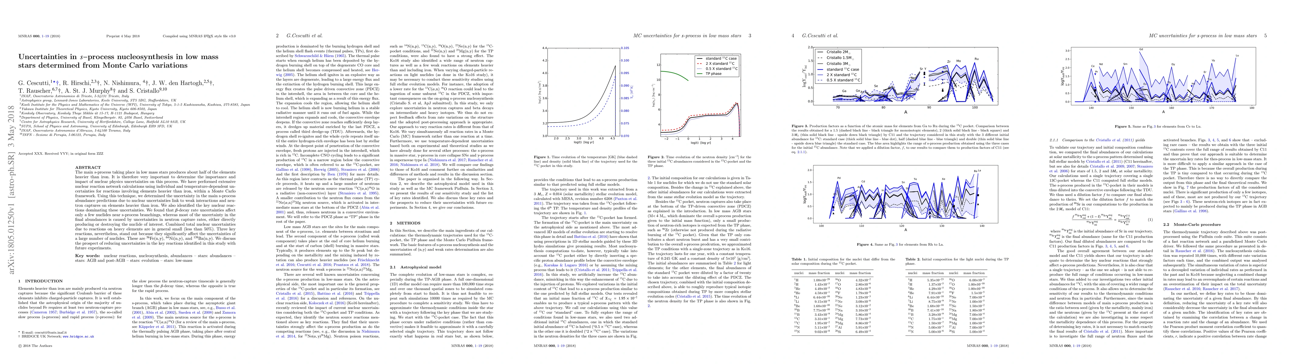 This paper investigates the uncertainties in s-process nucleosynthesis in low mass stars, using Monte Carlo simulations to determine the impact of nuclear physics uncertainties. It finds that while total uncertainties are generally small, key reactions like $^{56}$Fe(n,$\gamma$), $^{64}$Ni(n,$\gamma$), and $^{138}$Ba(n,$\gamma$) significantly affect the uncertainties of many nuclides.