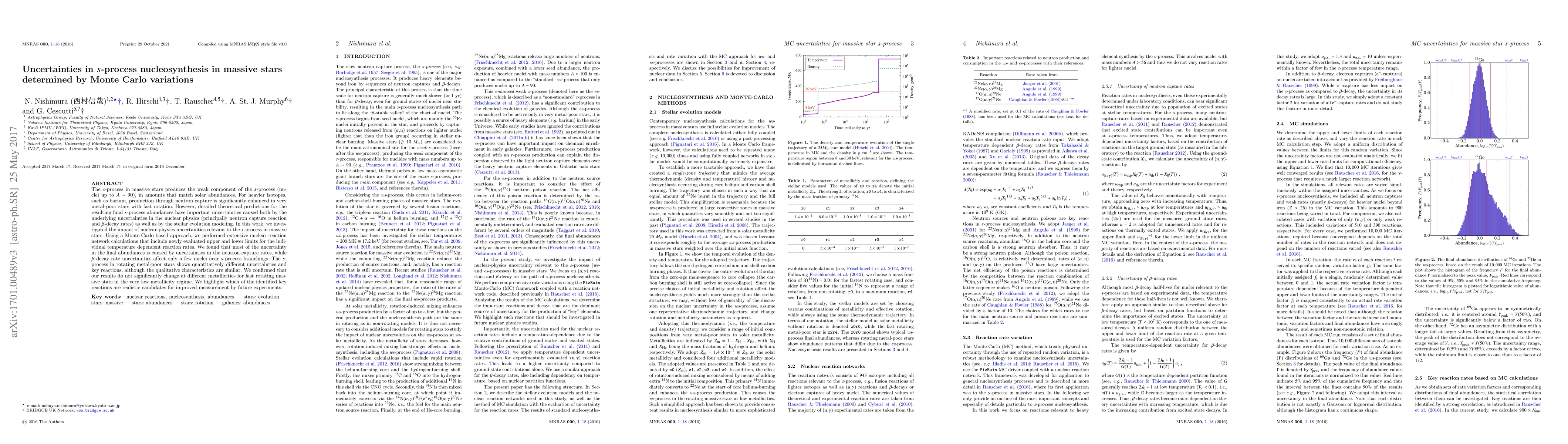 This paper investigates uncertainties in the $s$-process nucleosynthesis in massive stars using Monte Carlo methods, finding that neutron capture rate uncertainties dominate over $\beta$-decay rates. It highlights key reactions for future experimental improvements to reduce these uncertainties.