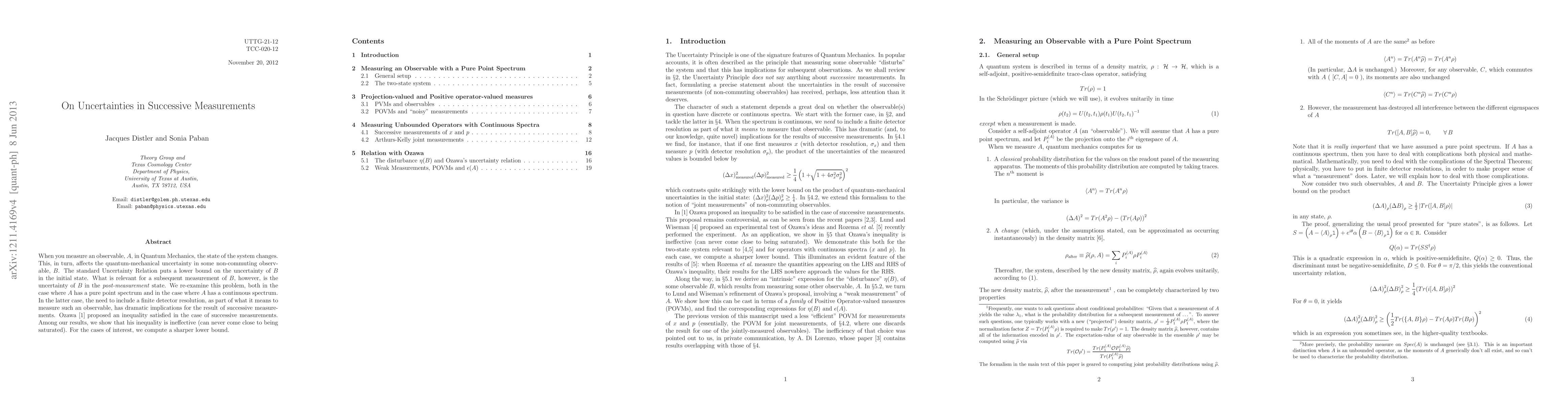 When you measure an observable, A, in Quantum Mechanics, the state of the system changes. This, in turn, affects the quantum-mechanical uncertainty in some non-commuting observable, B. The standard Uncertainty Relation puts a lower bound on the uncertainty of B in the initial state. What is relevant for a subsequent measurement of B, however, is the uncertainty of B in the post-measurement state. We re-examine this problem, both in the case where A has a pure point spectrum and in the case where A has a continuous spectrum. In the latter case, the need to include a finite detector resolution, as part of what it means to measure such an observable, has dramatic implications for the result of successive measurements. Ozawa proposed an inequality satisfied in the case of successive measurements. Among our results, we show that his inequality is ineffective (can never come close to being saturated). For the cases of interest, we compute a sharper lower bound.