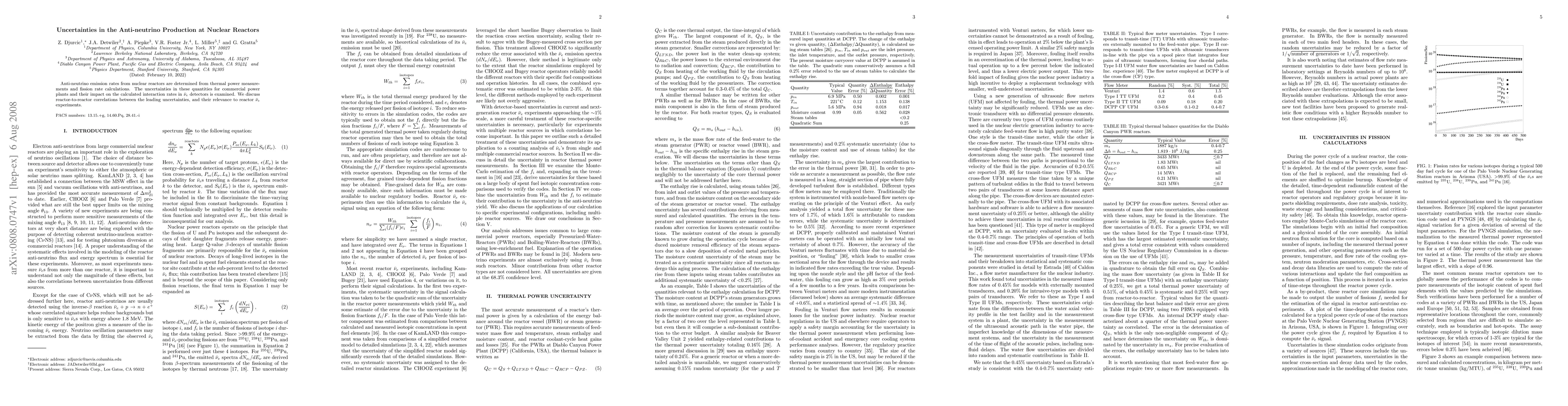 This paper investigates the uncertainties in anti-neutrino production from nuclear reactors, focusing on thermal power and fission rate calculations. It examines the impact of these uncertainties on interaction rates in electron anti-neutrino detectors and explores correlations between reactors to inform reactor anti-neutrino experiments.