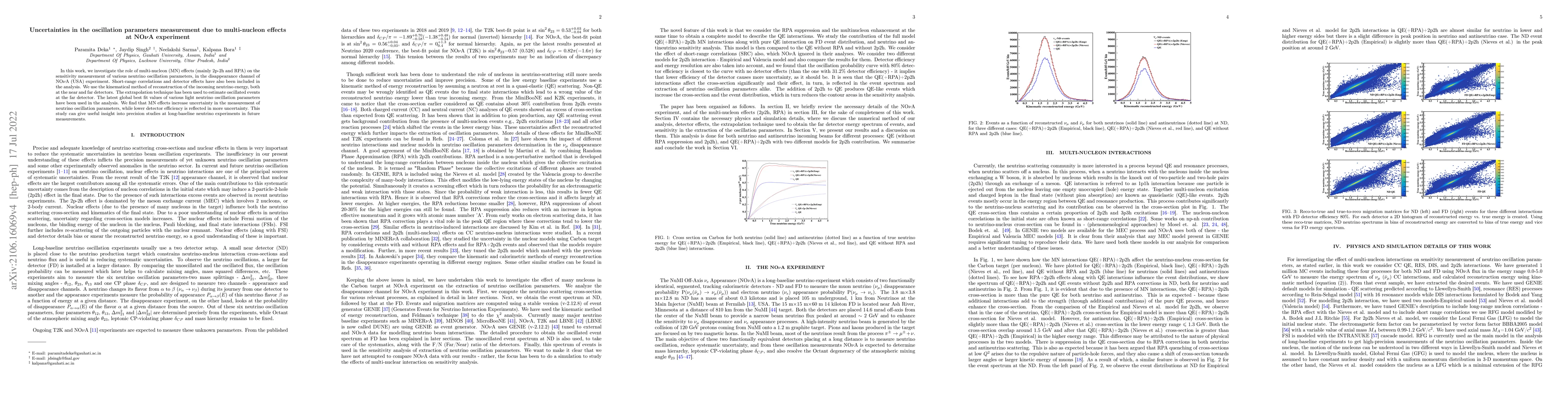 In this work, we investigate the role of multi-nucleon (MN) effects (mainly 2p-2h and RPA) on the sensitivity measurement of various neutrino oscillation parameters, in the disappearance channel of NO$\nu$A (USA) experiment. Short-range correlations and detector effects have also been included in the analysis. We use the kinematical method of reconstruction of the incoming neutrino energy, both at the near and far detectors. The extrapolation technique has been used to estimate oscillated events at the far detector. The latest global best fit values of various light neutrino oscillation parameters have been used in the analysis. We find that MN effects increase uncertainty in the measurement of neutrino oscillation parameters, while lower detector efficiency is reflected in more uncertainty. This study can give useful insight into precision studies at long-baseline neutrino experiments in future measurements.