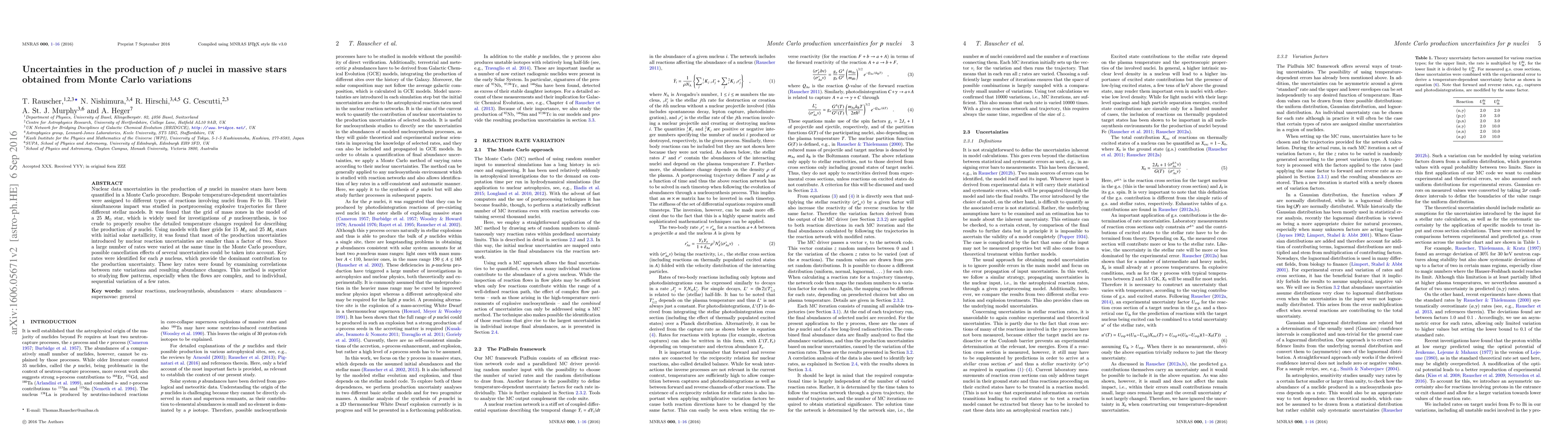 This study quantifies nuclear uncertainties in $p$ nucleus production in massive stars using a Monte Carlo approach, revealing that finer stellar model grids are necessary for accurate $p$ nucleosynthesis. Key reaction rates were identified that dominate production uncertainties, showing that most uncertainties are within a factor of two.