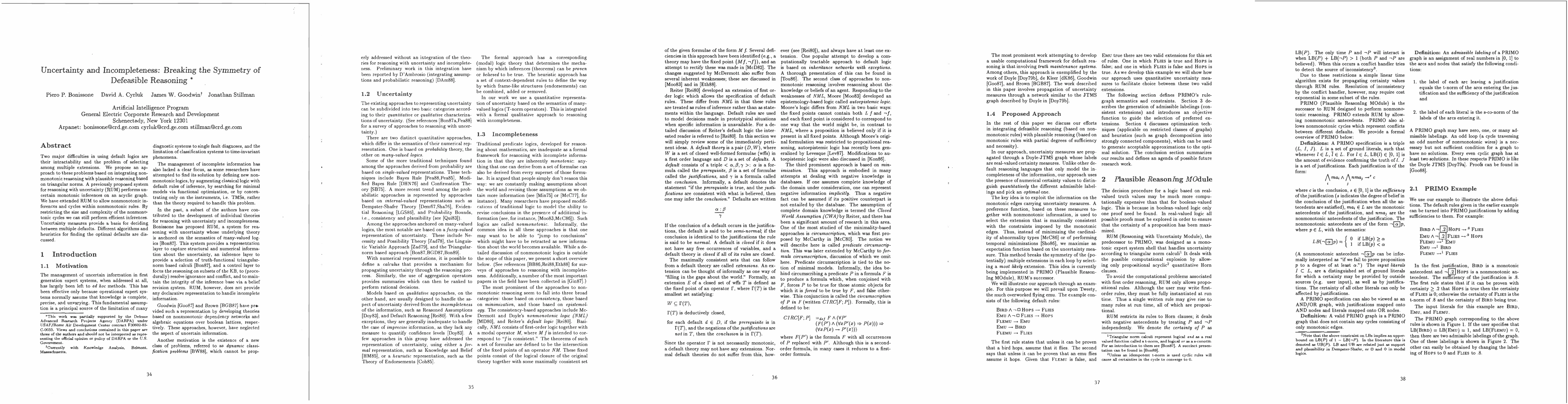 Two major difficulties in using default logics are their intractability and the problem of selecting among multiple extensions. We propose an approach to these problems based on integrating nommonotonic reasoning with plausible reasoning based on triangular norms. A previously proposed system for reasoning with uncertainty (RUM) performs uncertain monotonic inferences on an acyclic graph. We have extended RUM to allow nommonotonic inferences and cycles within nonmonotonic rules. By restricting the size and complexity of the nommonotonic cycles we can still perform efficient inferences. Uncertainty measures provide a basis for deciding among multiple defaults. Different algorithms and heuristics for finding the optimal defaults are discussed.