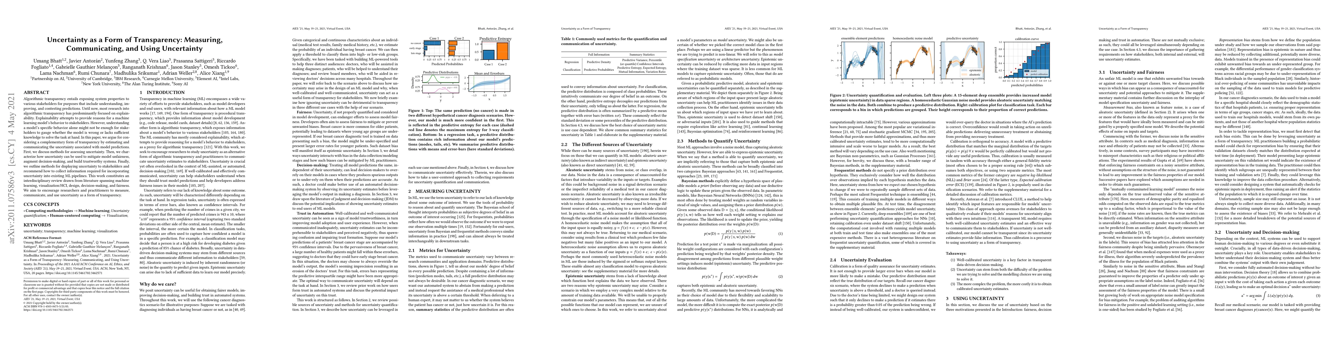 This paper proposes a new form of algorithmic transparency that measures and communicates uncertainty in machine learning predictions to help stakeholders understand model behavior and make more informed decisions.