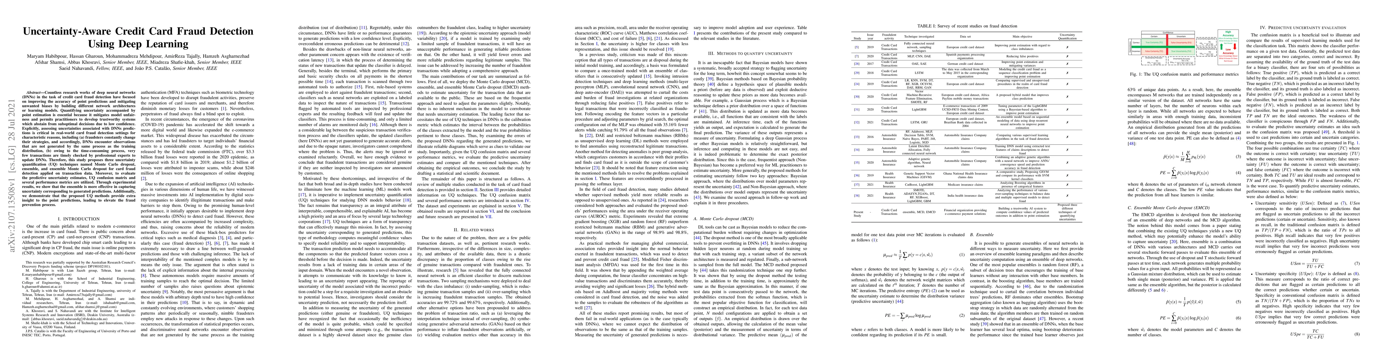This paper proposes three uncertainty quantification techniques—Monte Carlo dropout, ensemble, and ensemble Monte Carlo dropout—for credit card fraud detection using deep learning. The study finds that the ensemble method is more effective in capturing uncertainty and provides additional insights to improve fraud prevention.