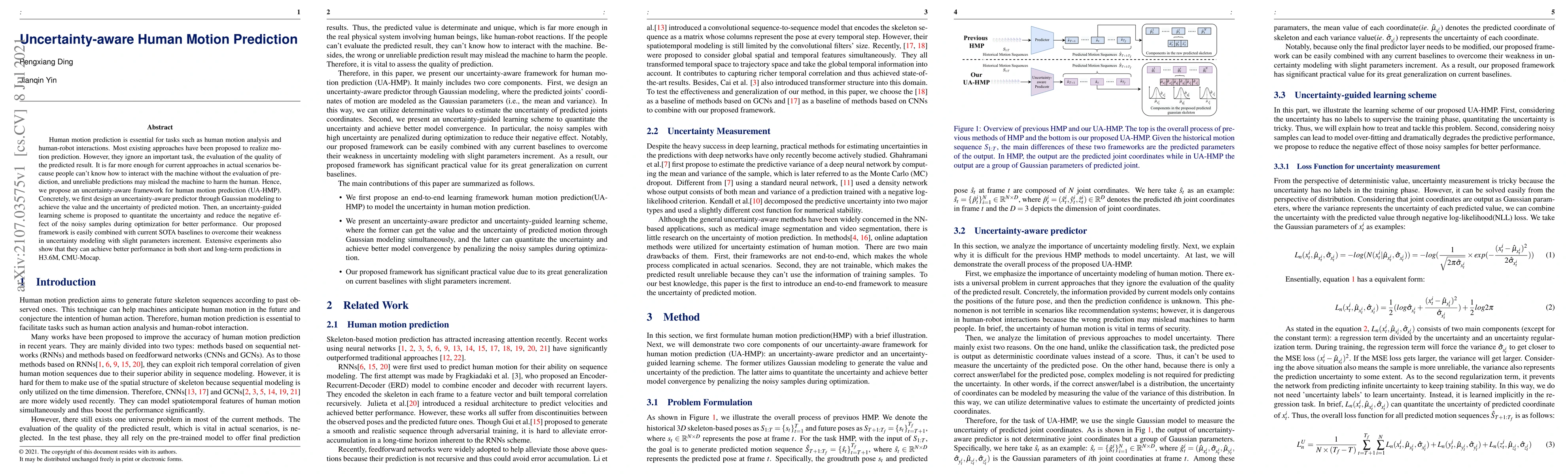 Human motion prediction is essential for tasks such as human motion analysis and human-robot interactions. Most existing approaches have been proposed to realize motion prediction. However, they ignore an important task, the evaluation of the quality of the predicted result. It is far more enough for current approaches in actual scenarios because people can't know how to interact with the machine without the evaluation of prediction, and unreliable predictions may mislead the machine to harm the human. Hence, we propose an uncertainty-aware framework for human motion prediction (UA-HMP). Concretely, we first design an uncertainty-aware predictor through Gaussian modeling to achieve the value and the uncertainty of predicted motion. Then, an uncertainty-guided learning scheme is proposed to quantitate the uncertainty and reduce the negative effect of the noisy samples during optimization for better performance. Our proposed framework is easily combined with current SOTA baselines to overcome their weakness in uncertainty modeling with slight parameters increment. Extensive experiments also show that they can achieve better performance in both short and long-term predictions in H3.6M, CMU-Mocap.