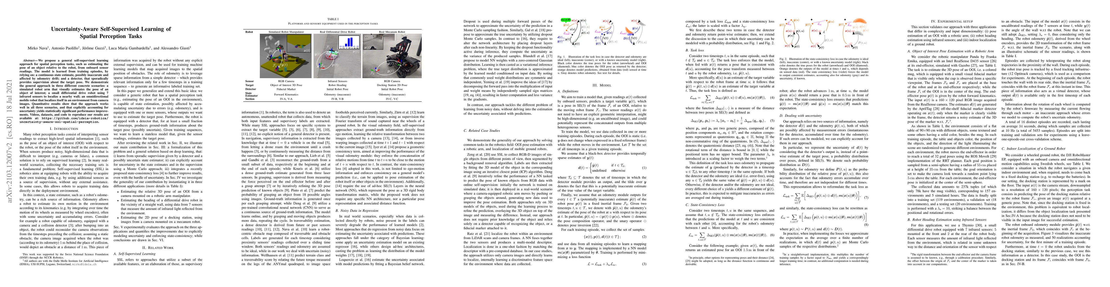 Researchers propose a self-supervised learning approach for spatial perception tasks that accounts for uncertainty in sensor readings, achieving statistically significant performance improvements in various scenarios.