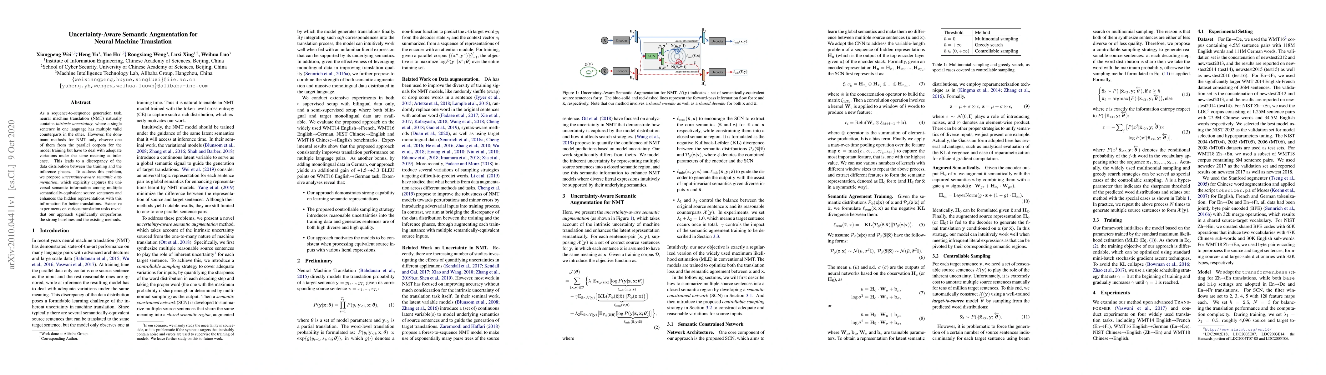 This paper proposes an uncertainty-aware semantic augmentation method for neural machine translation (NMT) to address discrepancies between training and inference data distributions. The method enhances model training by incorporating semantic information from multiple equivalent translations, leading to significant improvements over existing baselines in various translation tasks.