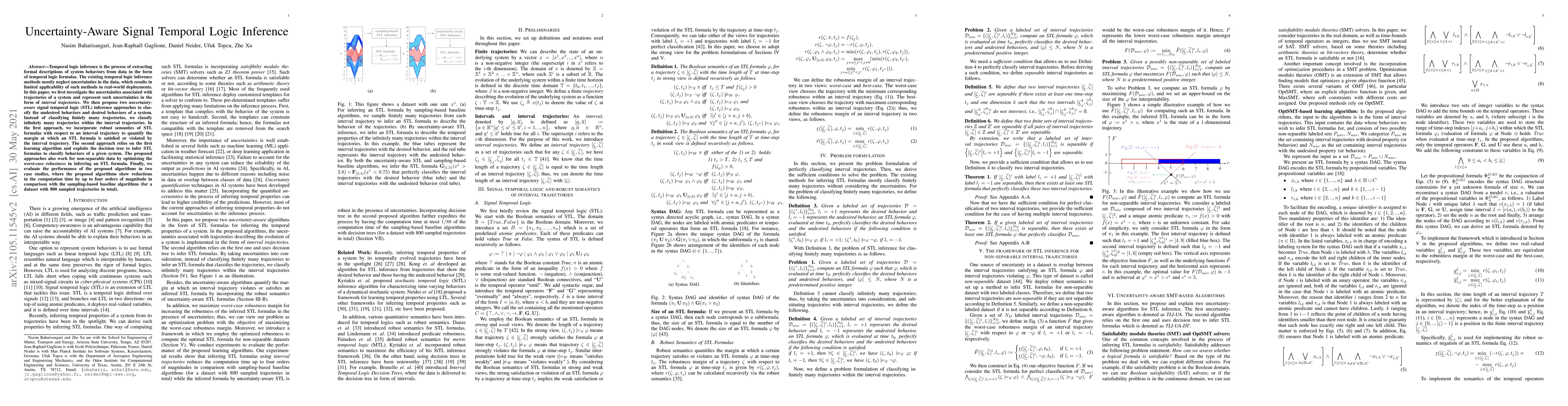This paper proposes uncertainty-aware signal temporal logic (STL) inference methods to classify system behaviors by incorporating interval trajectories to account for data uncertainties. The approaches demonstrate significant reductions in computation time compared to baseline algorithms, showing up to four orders of magnitude improvement.