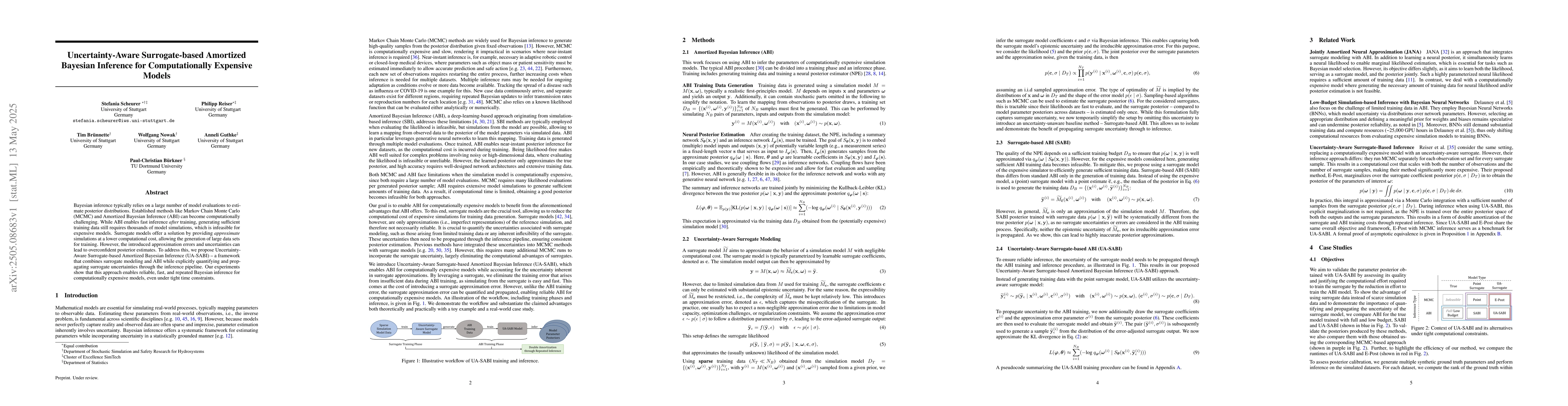 A new method called Uncertainty-Aware Surrogate-based Amortized Bayesian Inference (UA-SABI) reduces computational costs for complex models by combining surrogate modeling with a framework to quantify and handle uncertainties.
