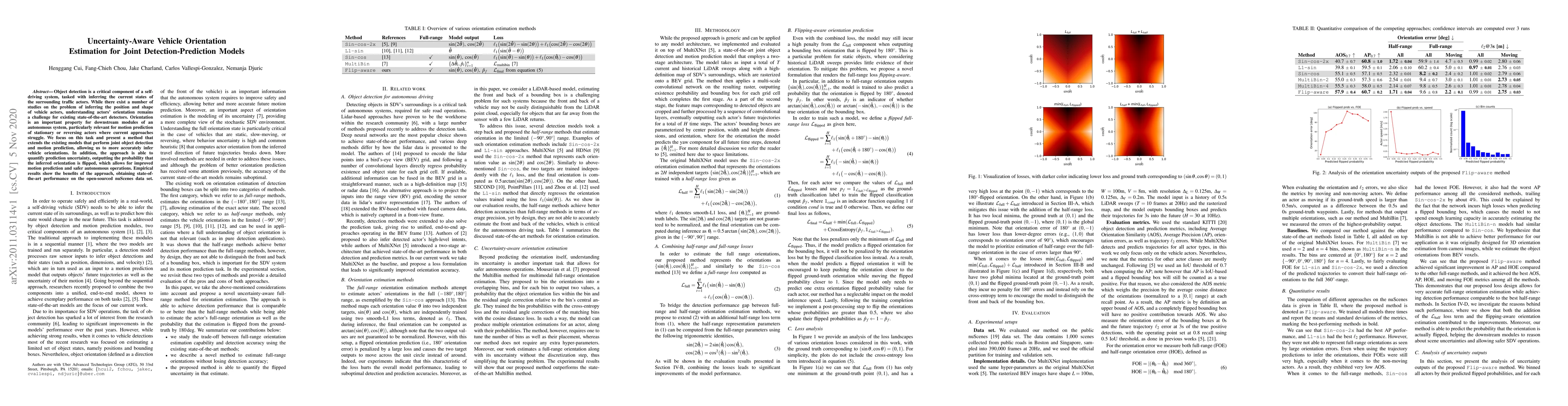 Object detection is a critical component of a self-driving system, tasked with inferring the current states of the surrounding traffic actors. While there exist a number of studies on the problem of inferring the position and shape of vehicle actors, understanding actors' orientation remains a challenge for existing state-of-the-art detectors. Orientation is an important property for downstream modules of an autonomous system, particularly relevant for motion prediction of stationary or reversing actors where current approaches struggle. We focus on this task and present a method that extends the existing models that perform joint object detection and motion prediction, allowing us to more accurately infer vehicle orientations. In addition, the approach is able to quantify prediction uncertainty, outputting the probability that the inferred orientation is flipped, which allows for improved motion prediction and safer autonomous operations. Empirical results show the benefits of the approach, obtaining state-of-the-art performance on the open-sourced nuScenes data set.
