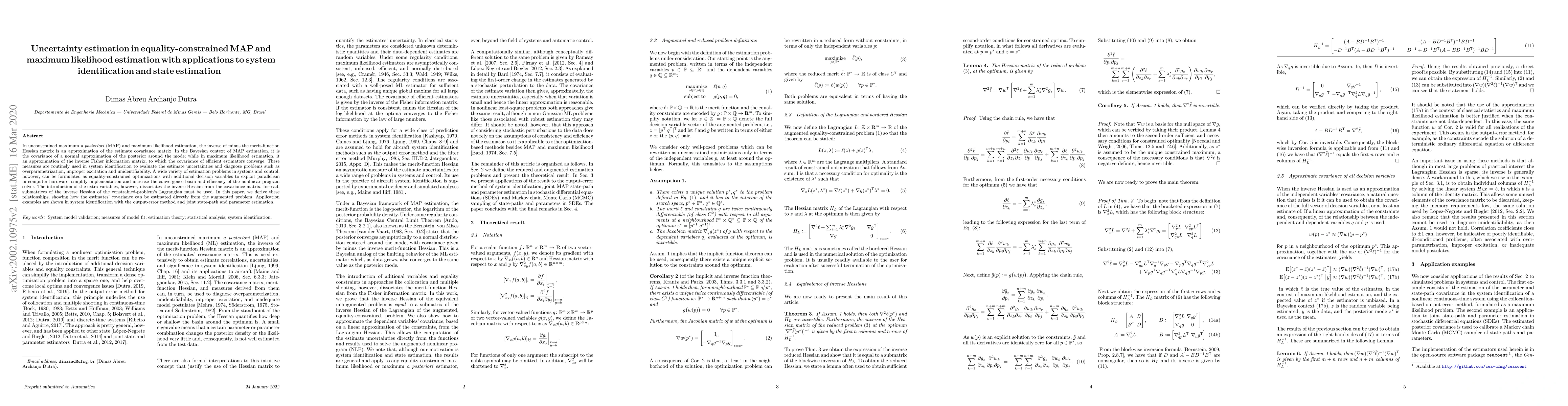 In unconstrained maximum a posteriori (MAP) and maximum likelihood estimation, the inverse of minus the merit-function Hessian matrix is an approximation of the estimate covariance matrix. In the Bayesian context of MAP estimation, it is the covariance of a normal approximation of the posterior around the mode; while in maximum likelihood estimation, it an approximation of the inverse Fisher information matrix, to which the covariance of efficient estimators converge. These measures are routinely used in system identification to evaluate the estimate uncertainties and diagnose problems such as overparametrization, improper excitation and unidentifiability. A wide variety of estimation problems in systems and control, however, can be formulated as equality-constrained optimizations with additional decision variables to exploit parallelism in computer hardware, simplify implementation and increase the convergence basin and efficiency of the nonlinear program solver. The introduction of the extra variables, however, dissociates the inverse Hessian from the covariance matrix. Instead, submatrices of the inverse Hessian of the constrained-problem's Lagrangian must be used. In this paper, we derive these relationships, showing how the estimates' covariance can be estimated directly from the augmented problem. Application examples are shown in system identification with the output-error method and joint state-path and parameter estimation.