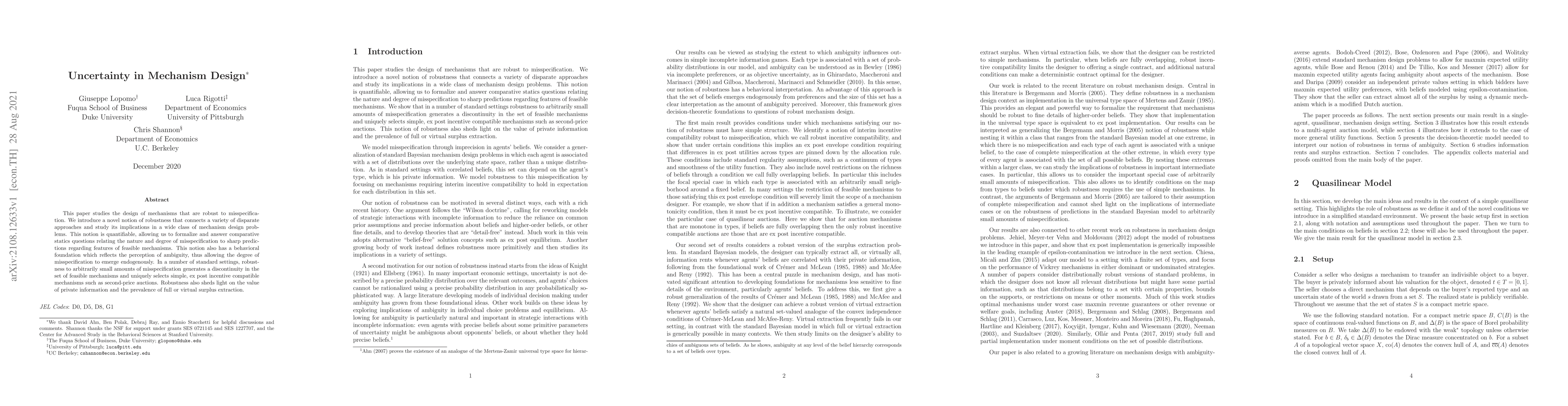 This paper studies the design of mechanisms that are robust to misspecification. We introduce a novel notion of robustness that connects a variety of disparate approaches and study its implications in a wide class of mechanism design problems. This notion is quantifiable, allowing us to formalize and answer comparative statics questions relating the nature and degree of misspecification to sharp predictions regarding features of feasible mechanisms. This notion also has a behavioral foundation which reflects the perception of ambiguity, thus allowing the degree of misspecification to emerge endogenously. In a number of standard settings, robustness to arbitrarily small amounts of misspecification generates a discontinuity in the set of feasible mechanisms and uniquely selects simple, ex post incentive compatible mechanisms such as second-price auctions. Robustness also sheds light on the value of private information and the prevalence of full or virtual surplus extraction.