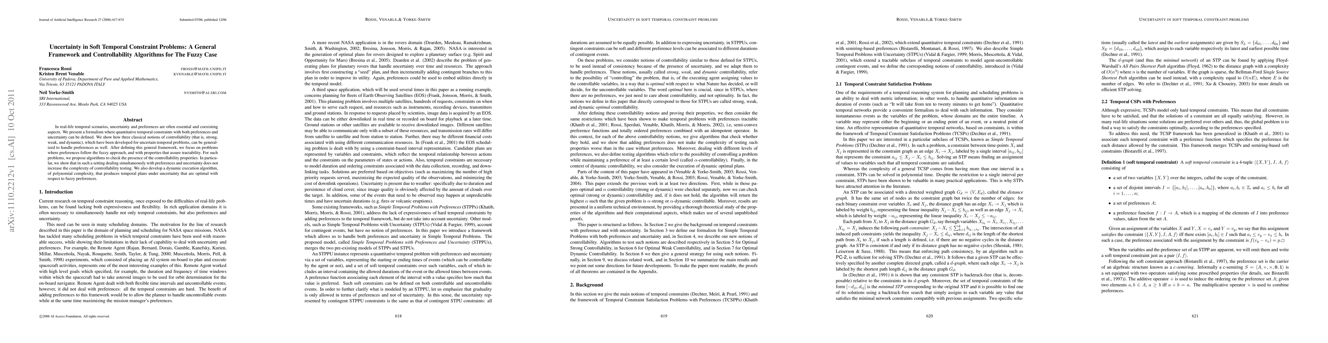 This paper introduces a framework for handling temporal constraints with both preferences and uncertainty, generalizing controllability notions to include preferences. It proposes algorithms for checking controllability in fuzzy preference scenarios and presents a dynamic execution algorithm for generating optimal temporal plans.