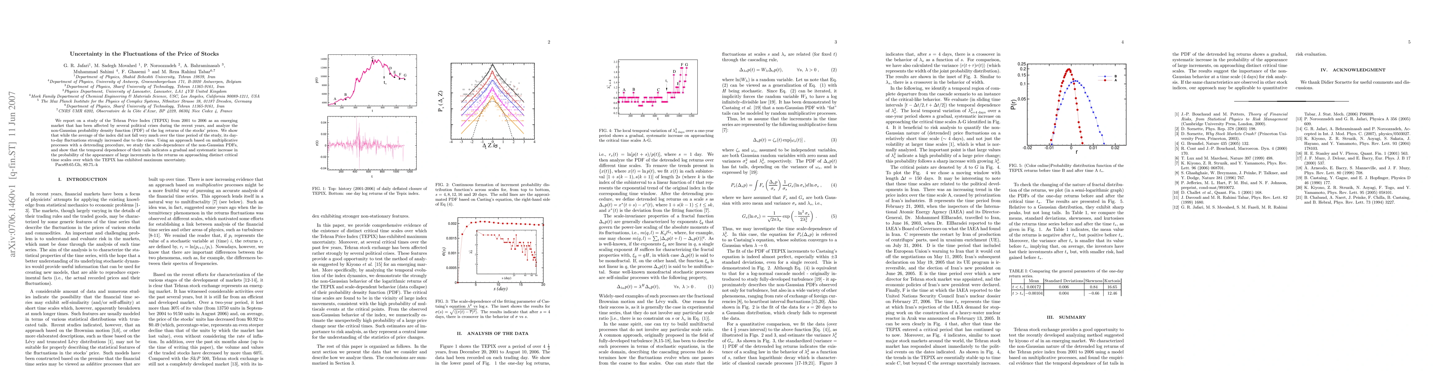 We report on a study of the Tehran Price Index (TEPIX) from 2001 to 2006 as an emerging market that has been affected by several political crises during the recent years, and analyze the non-Gaussian probability density function (PDF) of the log returns of the stocks' prices. We show that while the average of the index did not fall very much over the time period of the study, its day-to-day fluctuations strongly increased due to the crises. Using an approach based on multiplicative processes with a detrending procedure, we study the scale-dependence of the non-Gaussian PDFs, and show that the temporal dependence of their tails indicates a gradual and systematic increase in the probability of the appearance of large increments in the returns on approaching distinct critical time scales over which the TEPIX has exhibited maximum uncertainty.