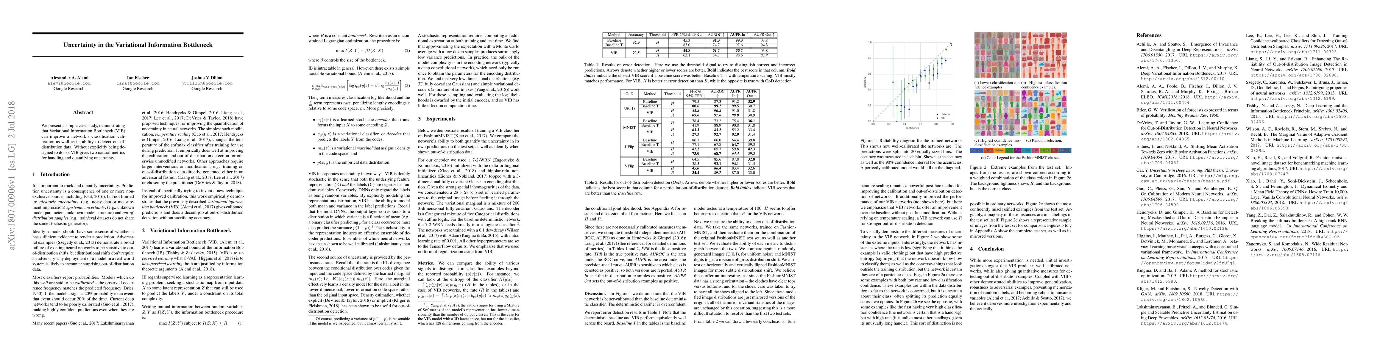 Summary: This study shows that Variational Information Bottleneck (VIB) enhances a network's classification accuracy and out-of-distribution detection, providing inherent metrics for uncertainty quantification without specific design for this purpose.