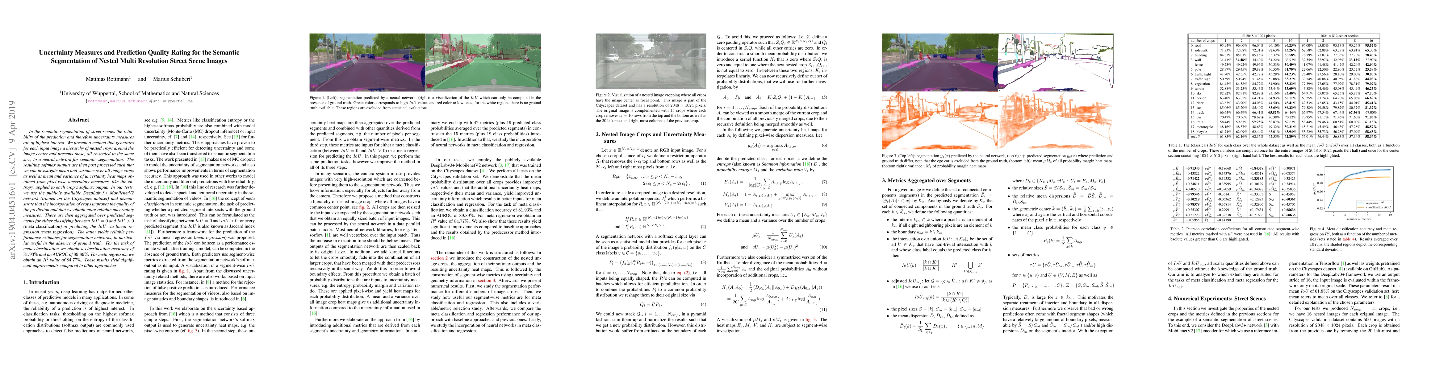 This paper proposes a method for semantic segmentation of street scenes using nested multi-resolution image crops to improve prediction quality and reliability. The approach aggregates uncertainty measures and prediction quality ratings through meta classification and regression, achieving notable improvements in accuracy and reliability.