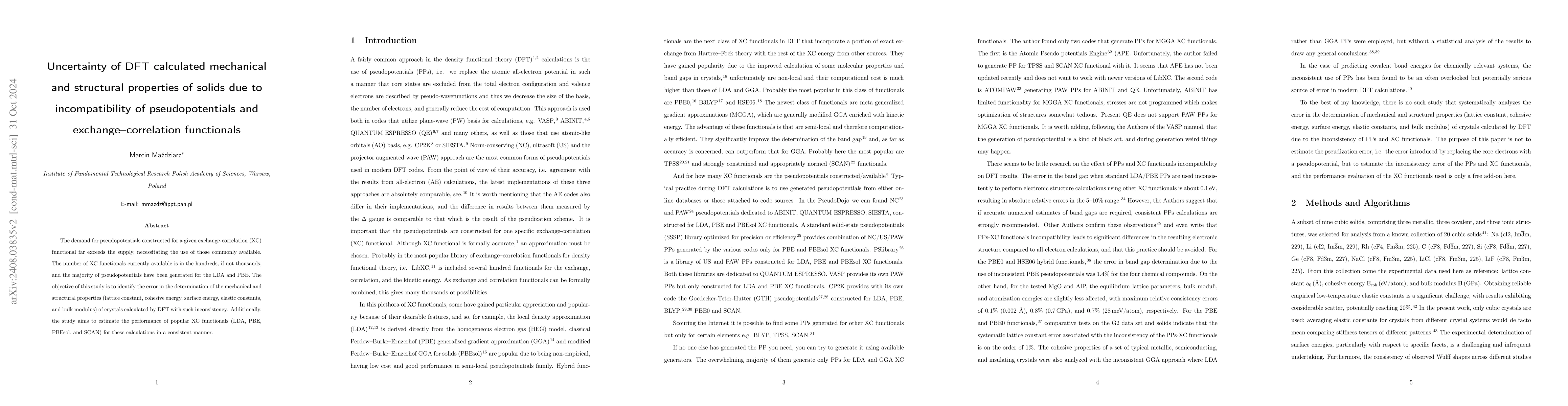 This study investigates the uncertainties in DFT calculations of mechanical and structural properties of solids due to using pseudopotentials not specifically designed for certain exchange-correlation functionals. It assesses the error introduced by this mismatch and evaluates the performance of popular functionals like LDA, PBE, PBEsol, and SCAN for these properties.