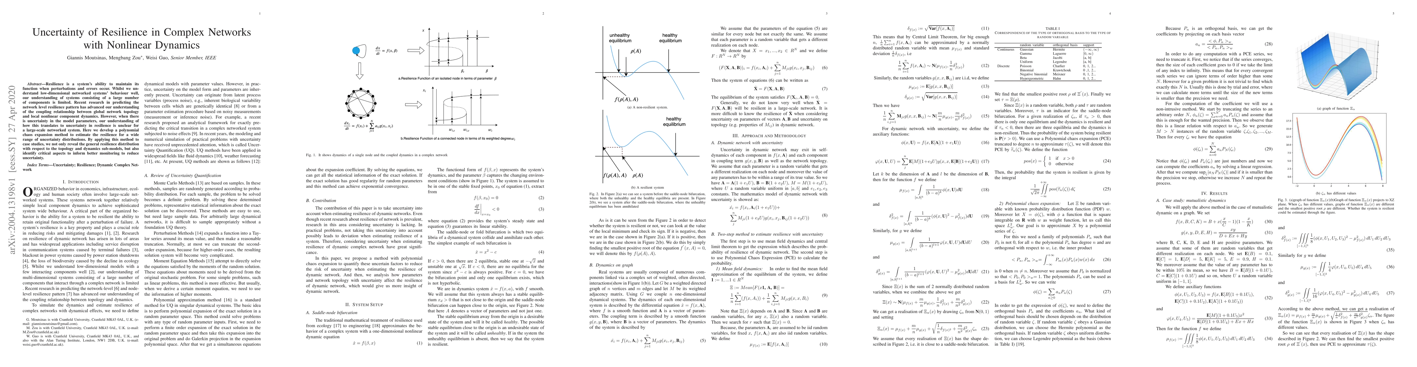 This paper develops a polynomial chaos expansion method to estimate resilience in large-scale complex networks under parameter uncertainty, revealing the relationship between network topology, nonlinear dynamics, and resilience distribution, and identifying critical factors for improved monitoring.