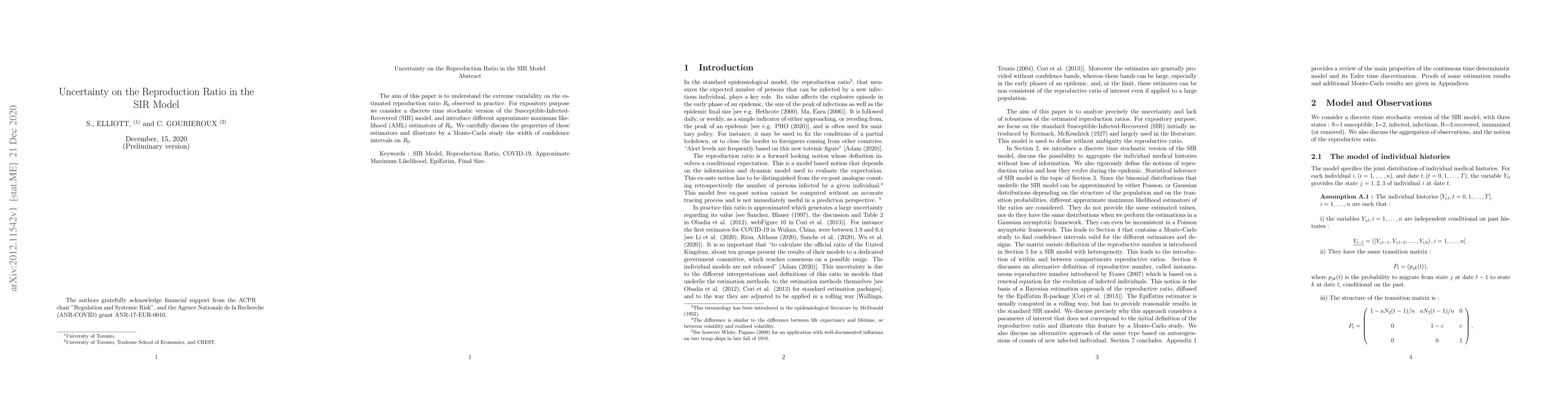 The aim of this paper is to understand the extreme variability on the estimated reproduction ratio $R_0$ observed in practice. For expository purpose we consider a discrete time stochastic version of the Susceptible-Infected-Recovered (SIR) model, and introduce different approximate maximum likelihood (AML) estimators of $R_0$. We carefully discuss the properties of these estimators and illustrate by a Monte-Carlo study the width of confidence intervals on $R_0$.