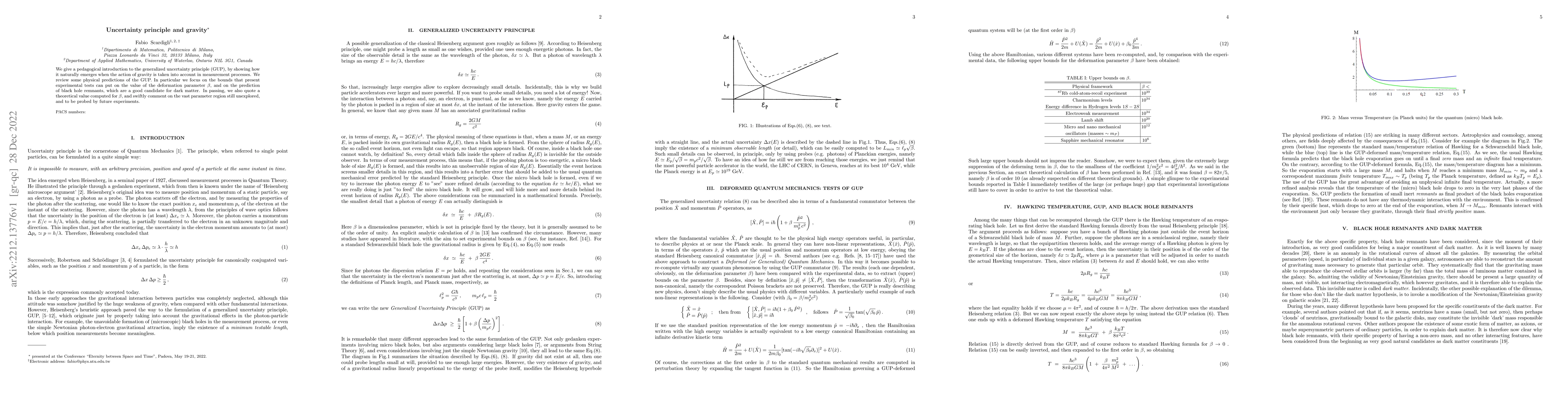 This paper introduces the generalized uncertainty principle (GUP) in the context of gravitational measurement processes and reviews its physical predictions, particularly focusing on experimental bounds for the deformation parameter $\beta$ and the implications for black hole remnants as dark matter candidates. It also highlights the vast unexplored parameter region awaiting future experimental investigation.