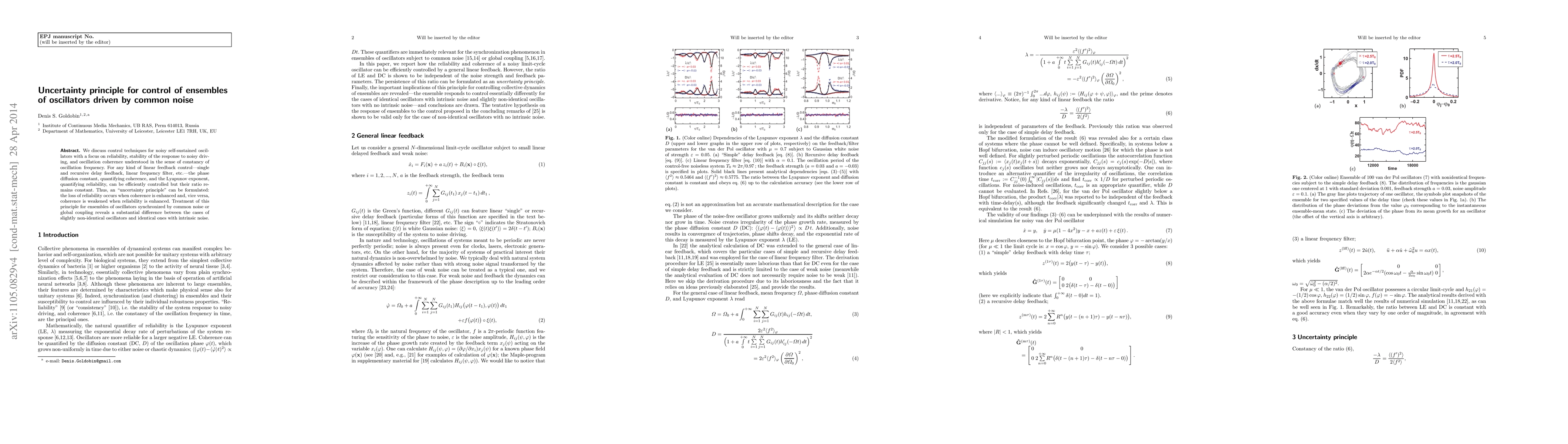 This paper explores control techniques for ensembles of noisy self-sustained oscillators, revealing an "uncertainty principle" where enhancing coherence (frequency constancy) reduces reliability (stability) and vice versa. The study highlights differences in control dynamics between slightly non-identical and identical oscillators under common noise.