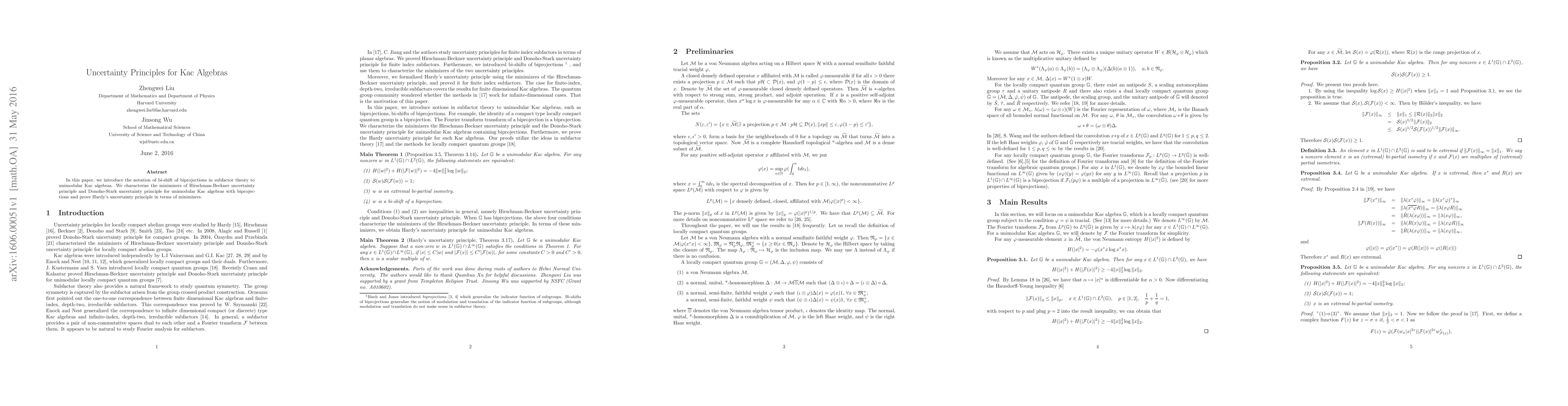 This paper extends the notion of bi-shift of biprojections to unimodular Kac algebras and identifies the minimizers for Hirschman-Beckner and Donoho-Stark uncertainty principles, ultimately proving Hardy's uncertainty principle through these minimizers.
