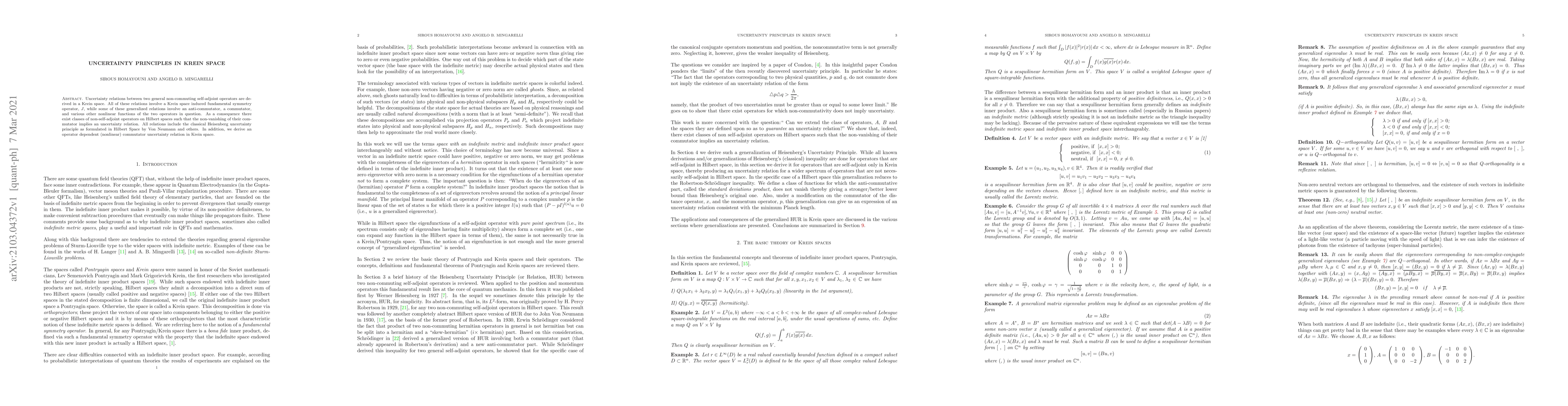 Research derives uncertainty relations in Krein space for non-commuting operators, including a classical Heisenberg principle as a special case, and an operator-dependent commutator relation.